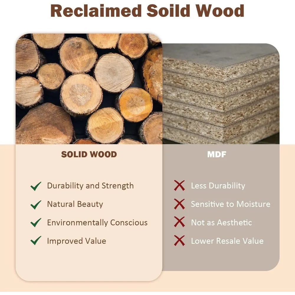 This item is a rustic design bench crafted from reclaimed wood, making each piece unique with natural features such as cracks, scratches, and knots that add charm and a sense of history. It's perfect for those who appreciate a warm, lived-in aesthetic and adds rustic elegance to your home. The bench is inspired by classic minimalist lines and features a timeless appeal. Constructed from sturdy pine and fir wood, this entry bench is built to last, combining durability with natural beauty. It has a weight capacity of 300 lbs and comfortably supports an adult, making it perfect for daily use. Its robust construction ensures it withstands the test of time while adding warmth and charm to your home. The bench is designed for effortless setup, with the tabletop and legs coming as ready-to-assemble units. Simply attach the two legs and the shelf to the tabletop, and your bench seat is complete without any extra steps. Featuring a 2-tier layout, this long bench combines functionality with rustic charm. The lower shelf provides convenient storage for shoes, blankets, or decor, while the sturdy, space-efficient design ensures it fits seamlessly into any room. Equipped with protective felt pads, it prevents floor scratches and adds stability. Perfect for entryways, living rooms, or small spaces, this mudroom bench offers both practicality and timeless style. This small bench for entryway is designed to adapt to your needs. Use it as a shoe bench in the entryway, extra seating in the living room, a dining bench in the kitchen, or a cozy end-of-bed bench in the bedroom. Its compact and armless design makes it a perfect fit for any space, whether it's the hallway, patio, foyer, or even a small apartment. A timeless piece that combines functionality with rustic charm, this vintage bench is ready to enhance your home wherever you need it. Please note that the actual color of the product may appear slightly different from the photos due to variations in lighting conditions and device display settings.