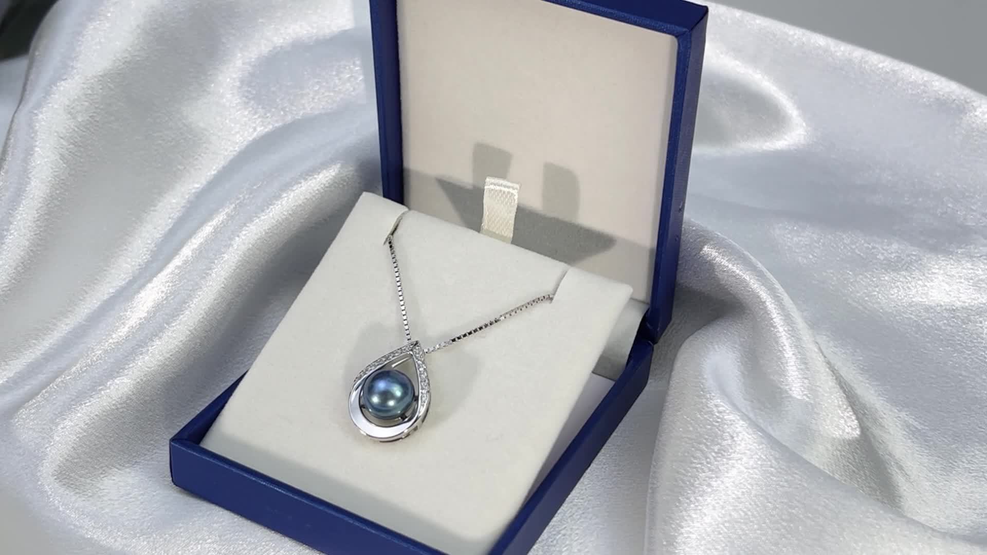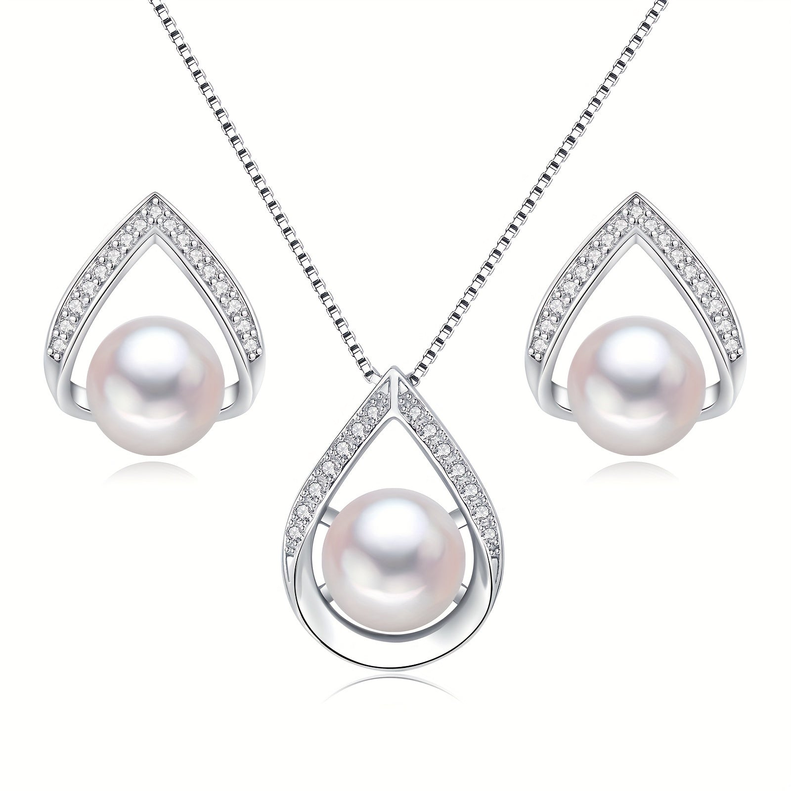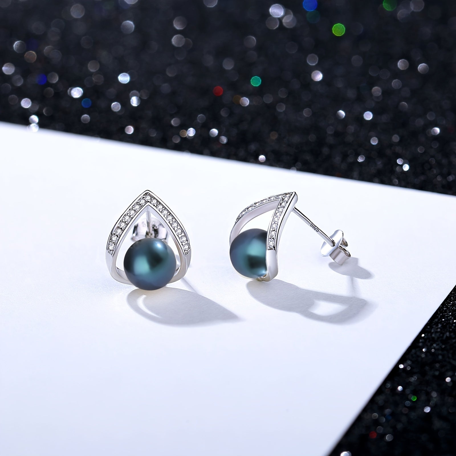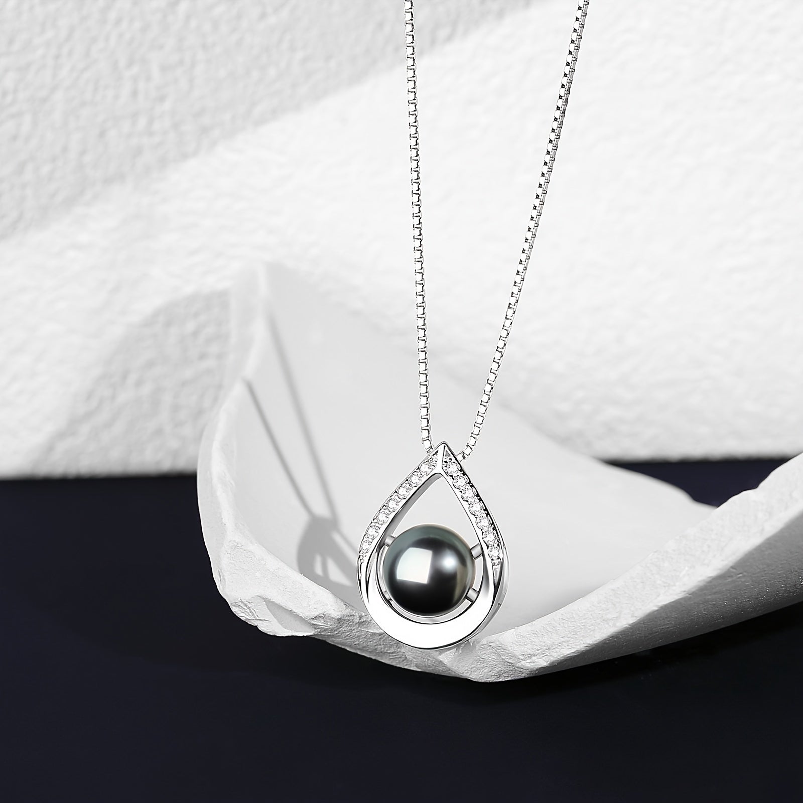 S925 Elegant Teardrop Style Cultured Black Pearls Necklace And Earrings Set