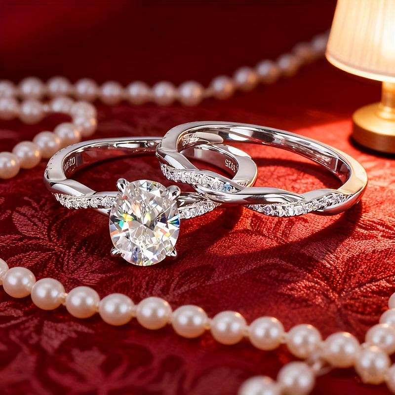 S925 Silver 2-Carat Moissanite Stackable Ring Women's Jewelry High-Quality Elegant Women's Wedding Band Perfect for EngaSynthetic Gemstoneents Weddings, Anniversaries, Proposals Ideal Holiday Jewelry Gift for Friends And Fami