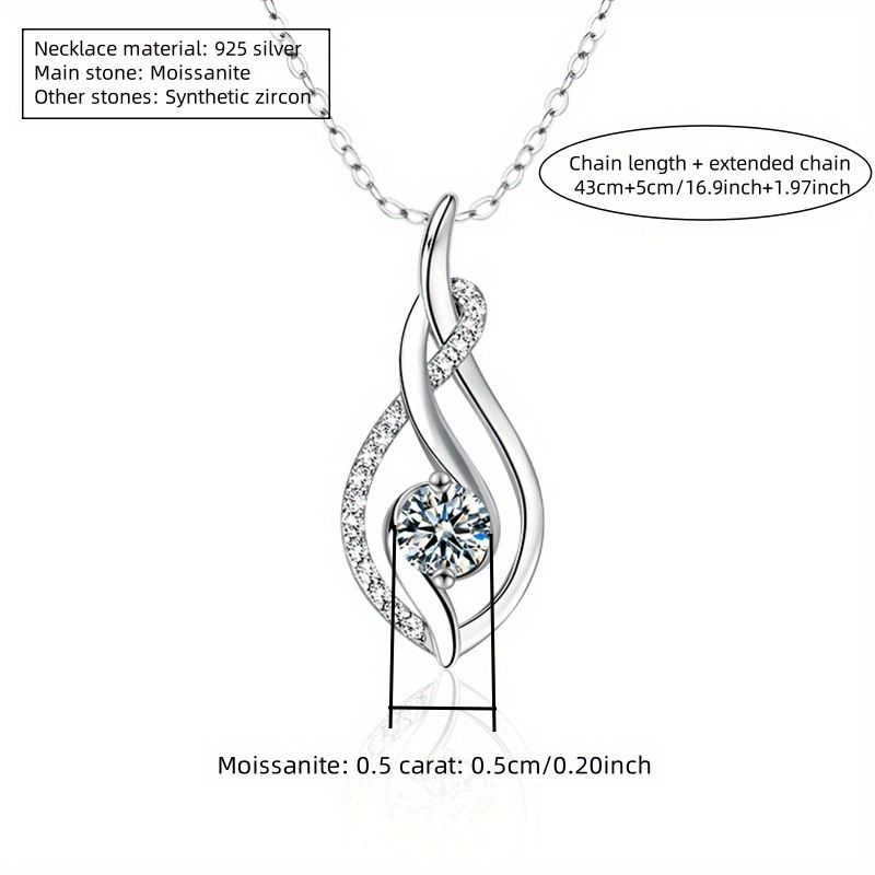 S925 silvery 0.5 carat four-claw round Moissanite classic fashion elegant versatile high-quality Women's pendant necklace clavicle chain, suitable for daily wear and wedding wear, suitable for Valentine's Day and New Year gif
