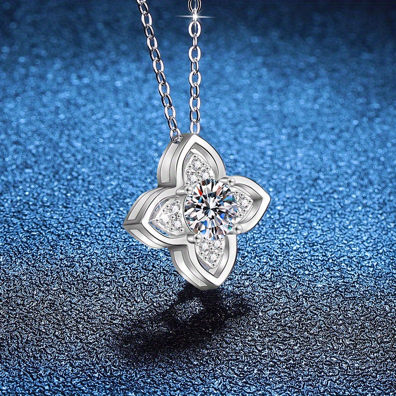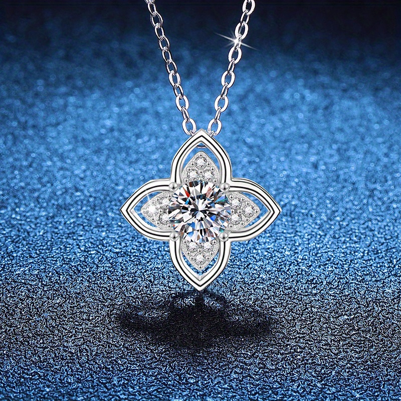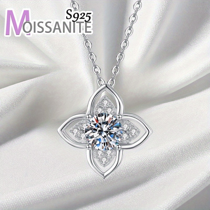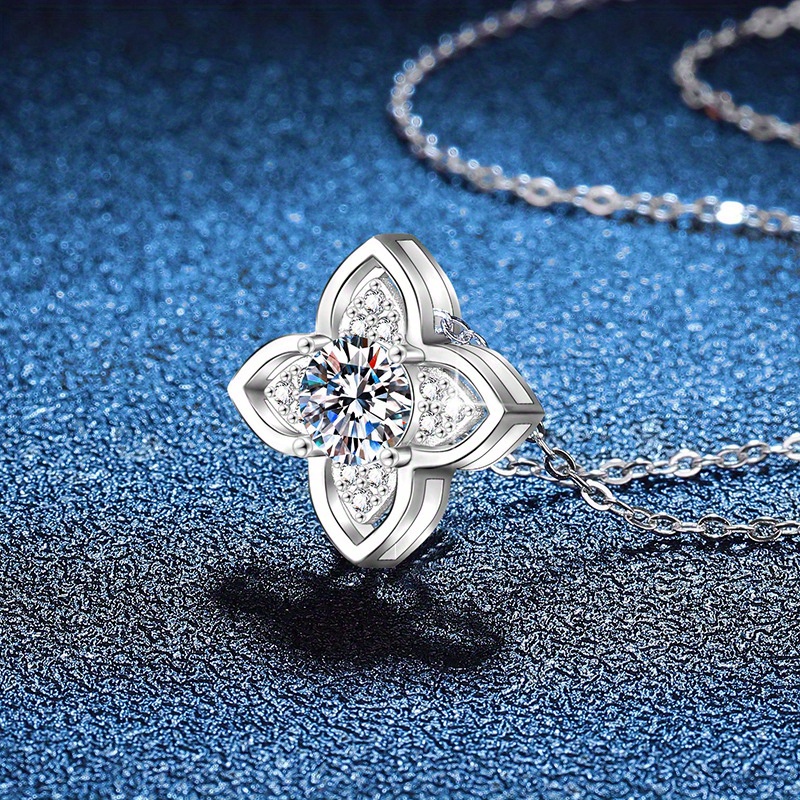 S925 silvery 1 carat four-claw round Moissanite classic and versatile Moissanite-shaped Women's fashion pendant necklace, suitable for daily wear and weddings, suitable for Valentine's Day, New Year's Day, birthday, anniversa