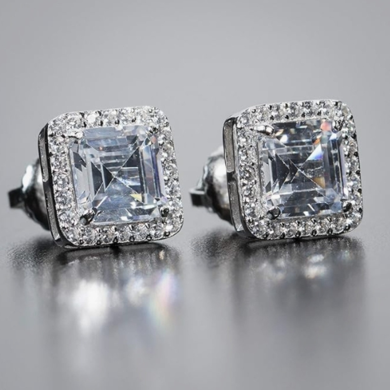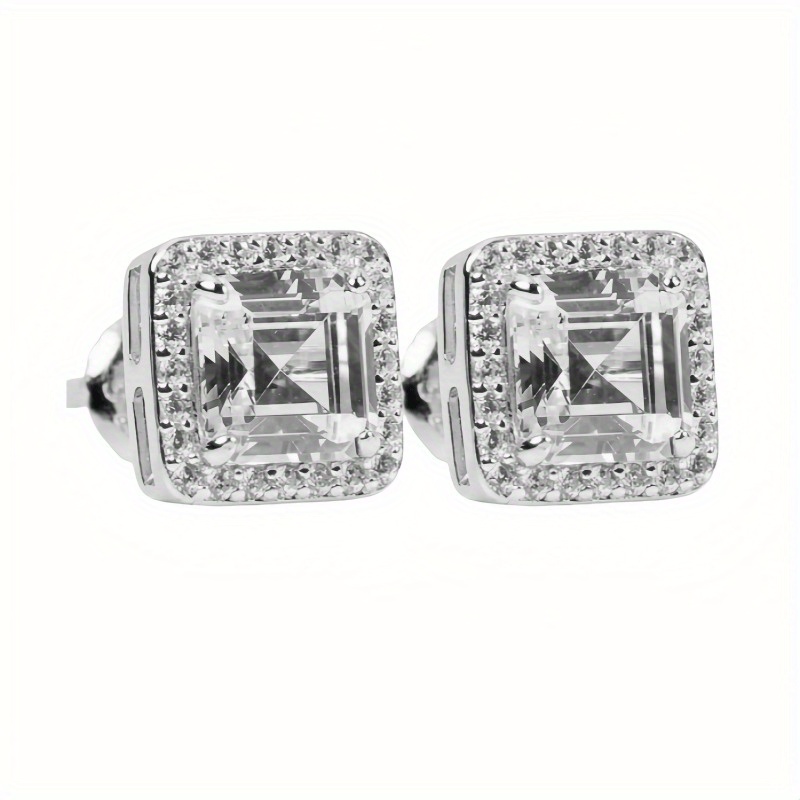 S925 Silvery Full Moissanite Earrings*2 Square Earrings, Suitable for Easter, Mother'S Day, Father'S Day, Birthday, Anniversary, Gift Giving And Daily Party, Holiday Party Wearing, Gift Box about 2, 5G