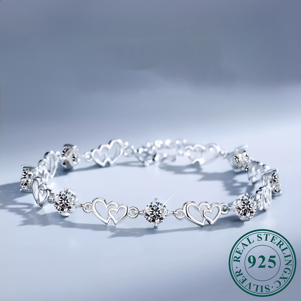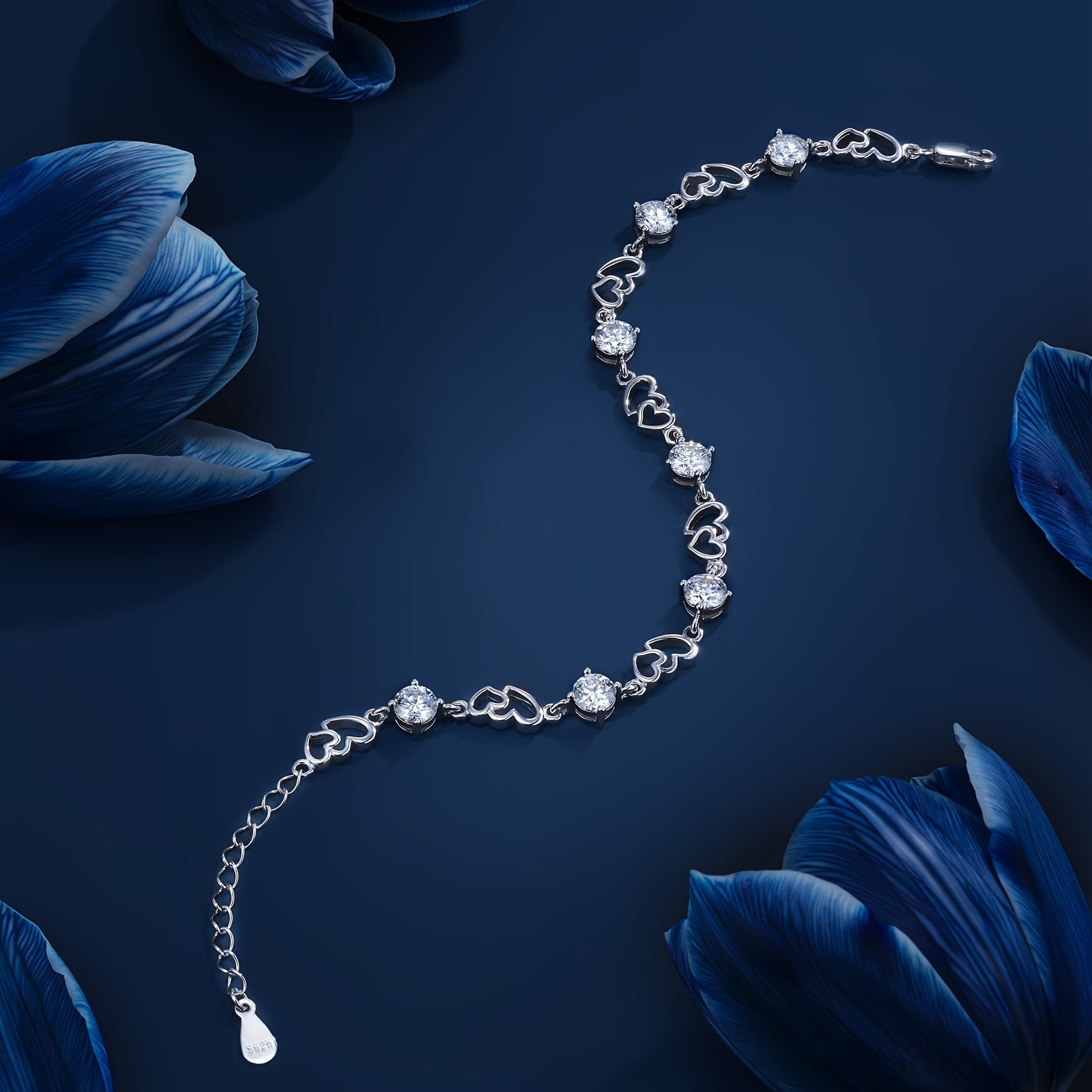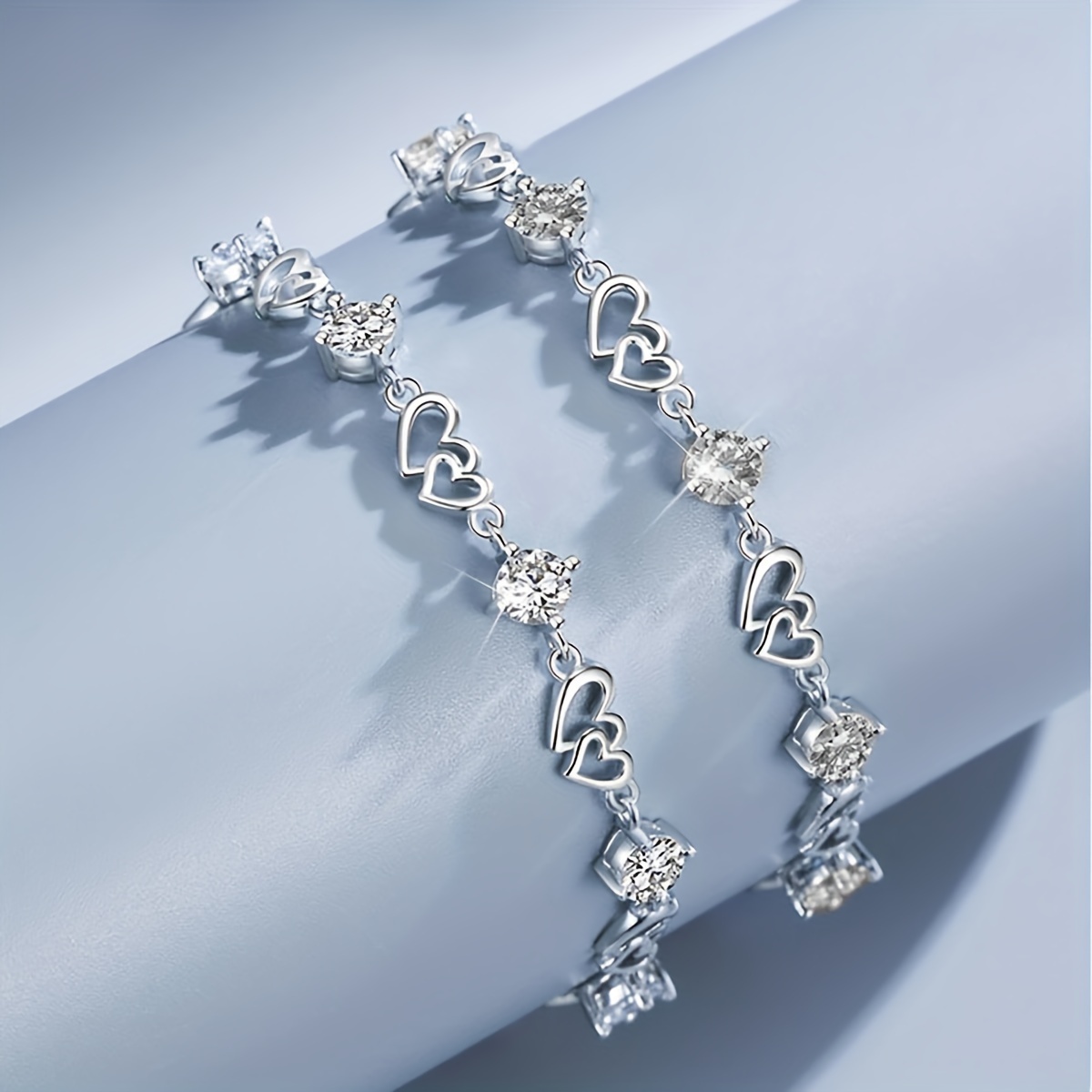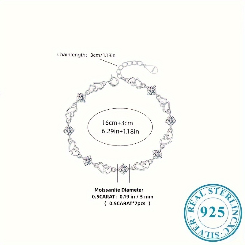 S925 Sterling Silver Bracelet, Heart-Shaped Moissanite Decor, Elegant & Sexy Ladies Fashion Bangle, Engagement, Wedding, Love Confession, Gift For Women, Valentine's Day Essential