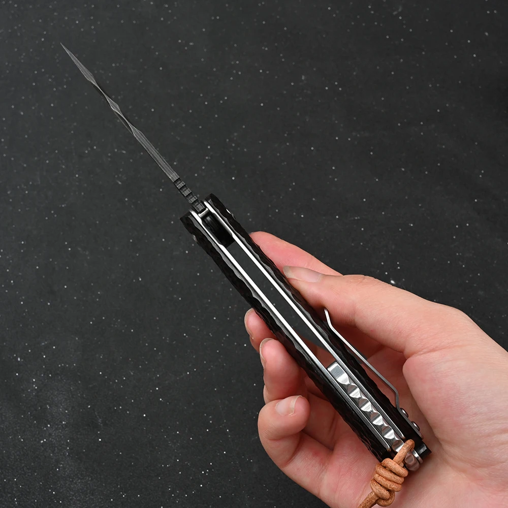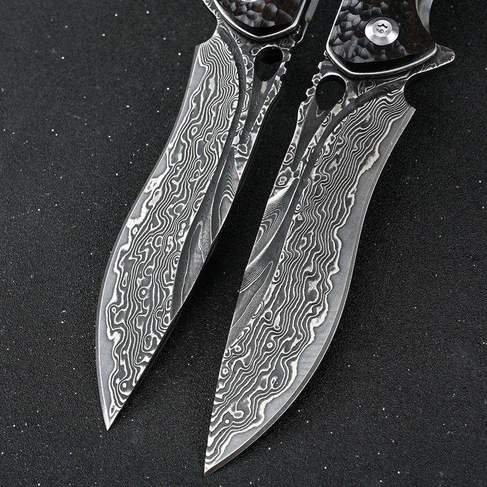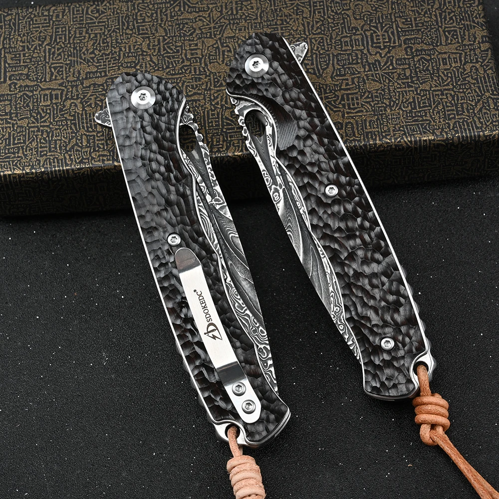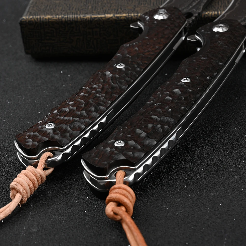 SDOKEDC Folding Knives VG10 Damascus Steel Hand Carved Ebony Pocket Knife Camping Survival Edc Multitool Utility Knife Mens Gift