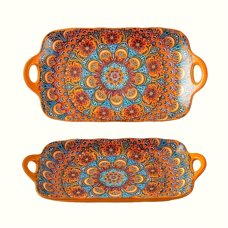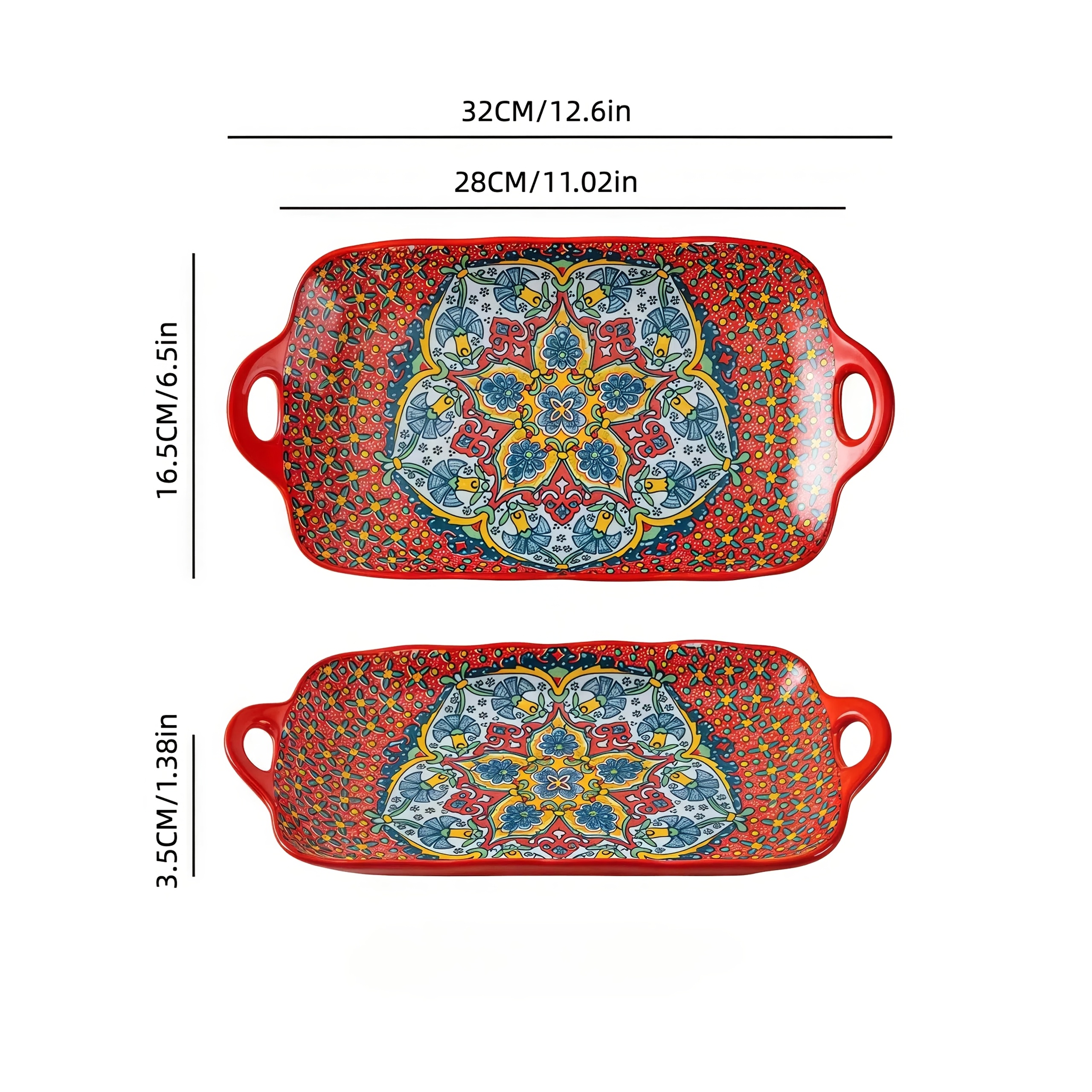 TAUFIKT Set Of 4 Large Rectangular Bohemian Ceramic Fish Plates - Elegant Steamed Fish Plates for Home, Kitchen And Restaurant - Durable, Easy-to-clean, Space-saving Design Can Be Used for Christmas, Valentine's Day, Thanksgi