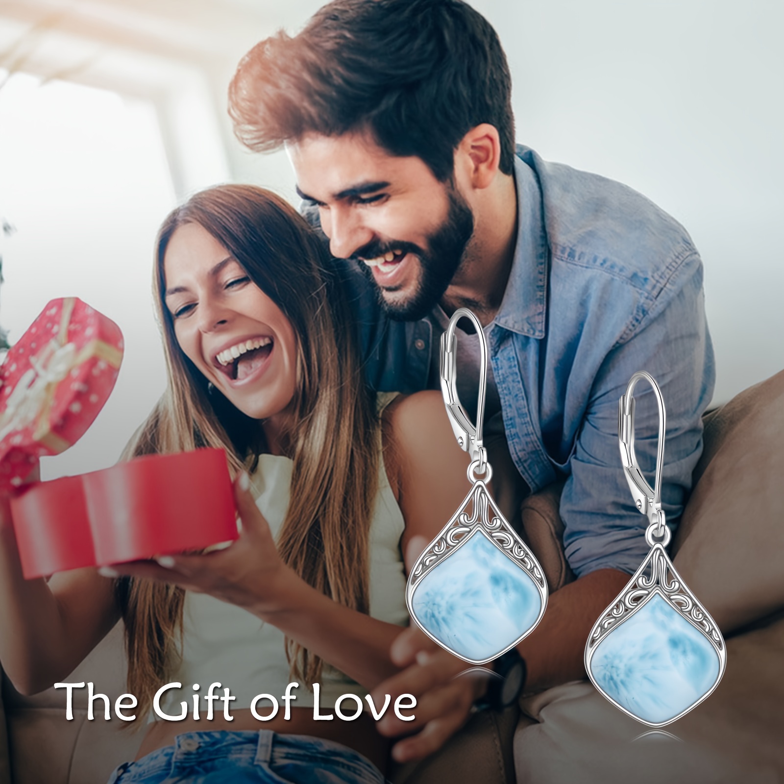 Larimar of Natural Gemstone(Every stone is different, so the color pattern will not be exactly the same as the picture!),The larimar has an ocean-like blue color, and the pattern of the stone is like waves blooming in the sea. In summer, wearing larimar earrings is definitely the most beautiful,this silver larimar earring is one of the must-have jewelry for your summer travel or going out