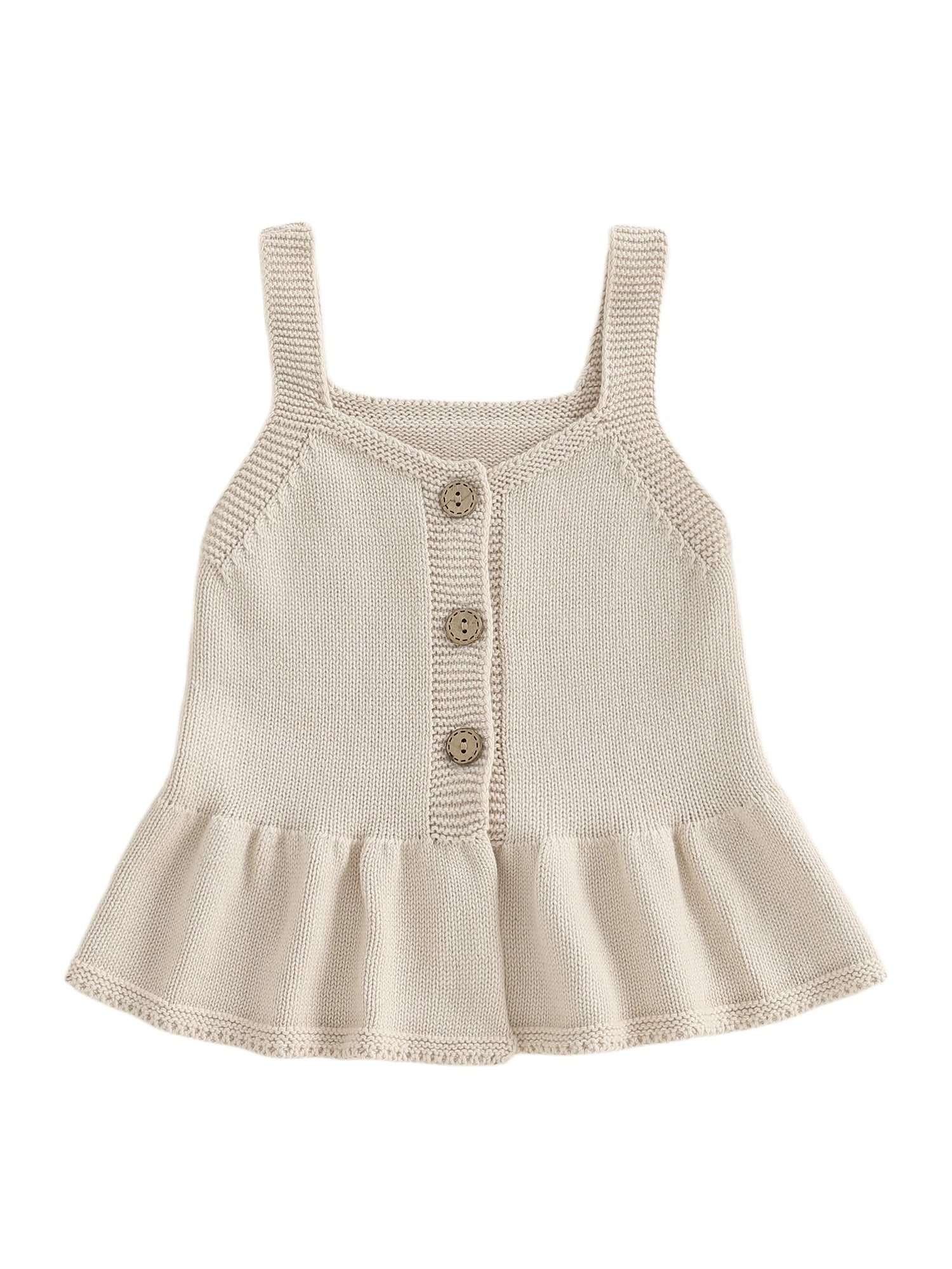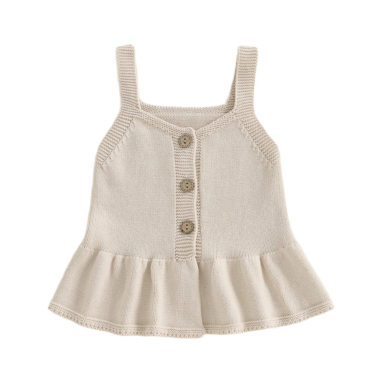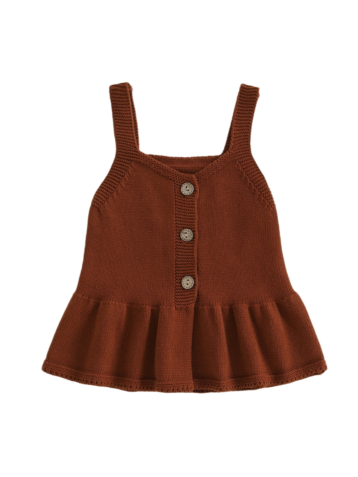 Baby Girl Knitted Cami Tops Solid V Neck Sleeveless Ruffled Hem Sweater Cardigan Cute Winter Fall ClothesSize(cm)