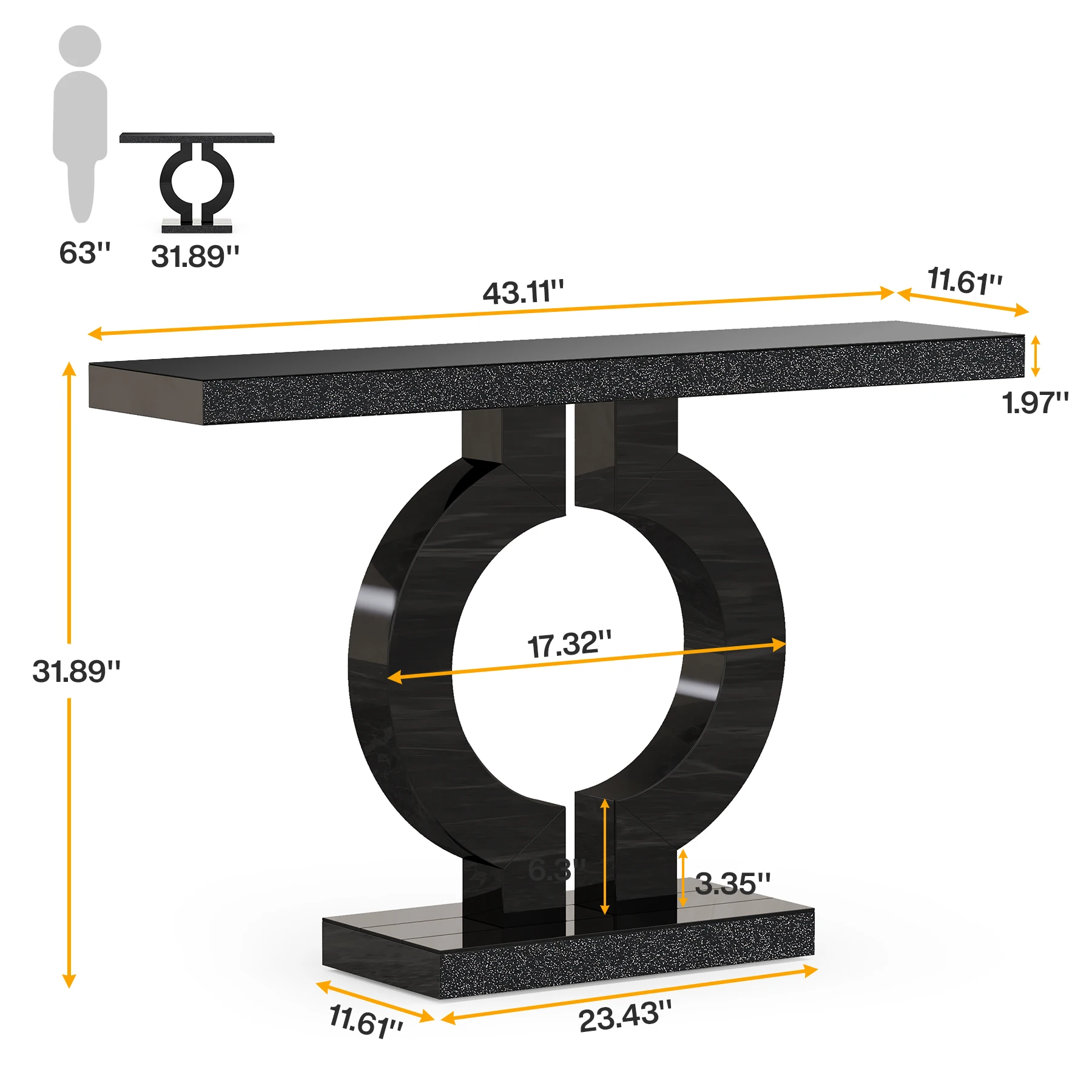 【Sturdy Construction】: The table, measuring 43.11 X 11.61 X 31.69 inches (Width X Depth X Height) with legs 3.74 inches thick, promises stability. Experience its beauty and versatility for years to come, backed by solid and reliable construction