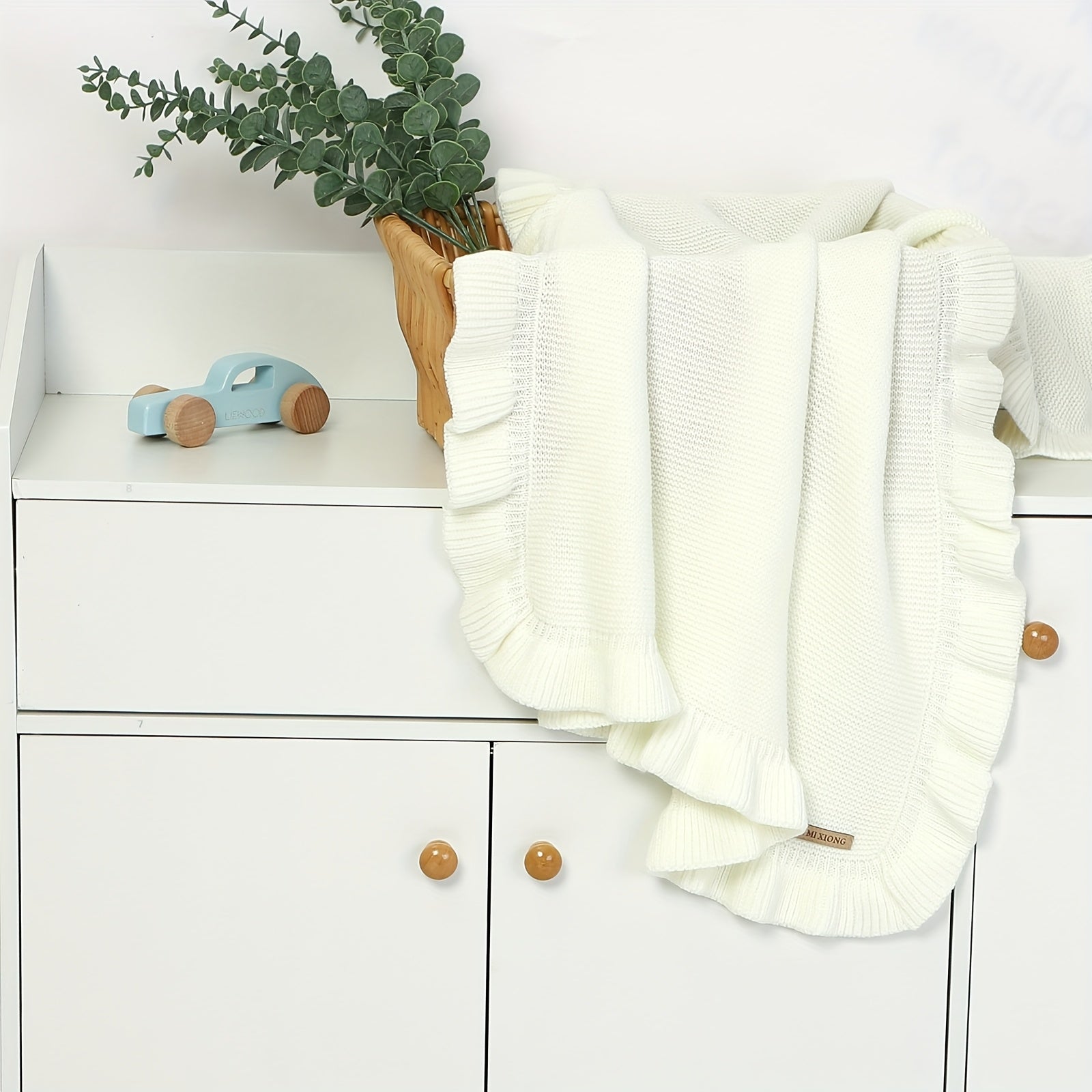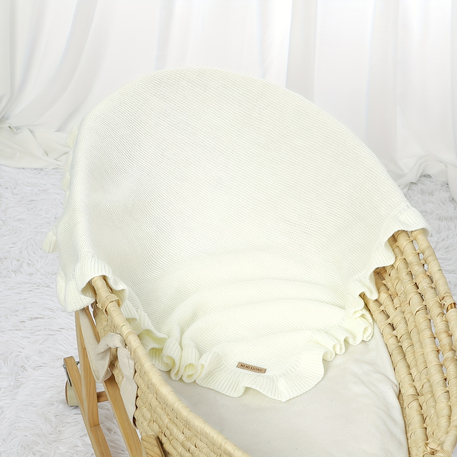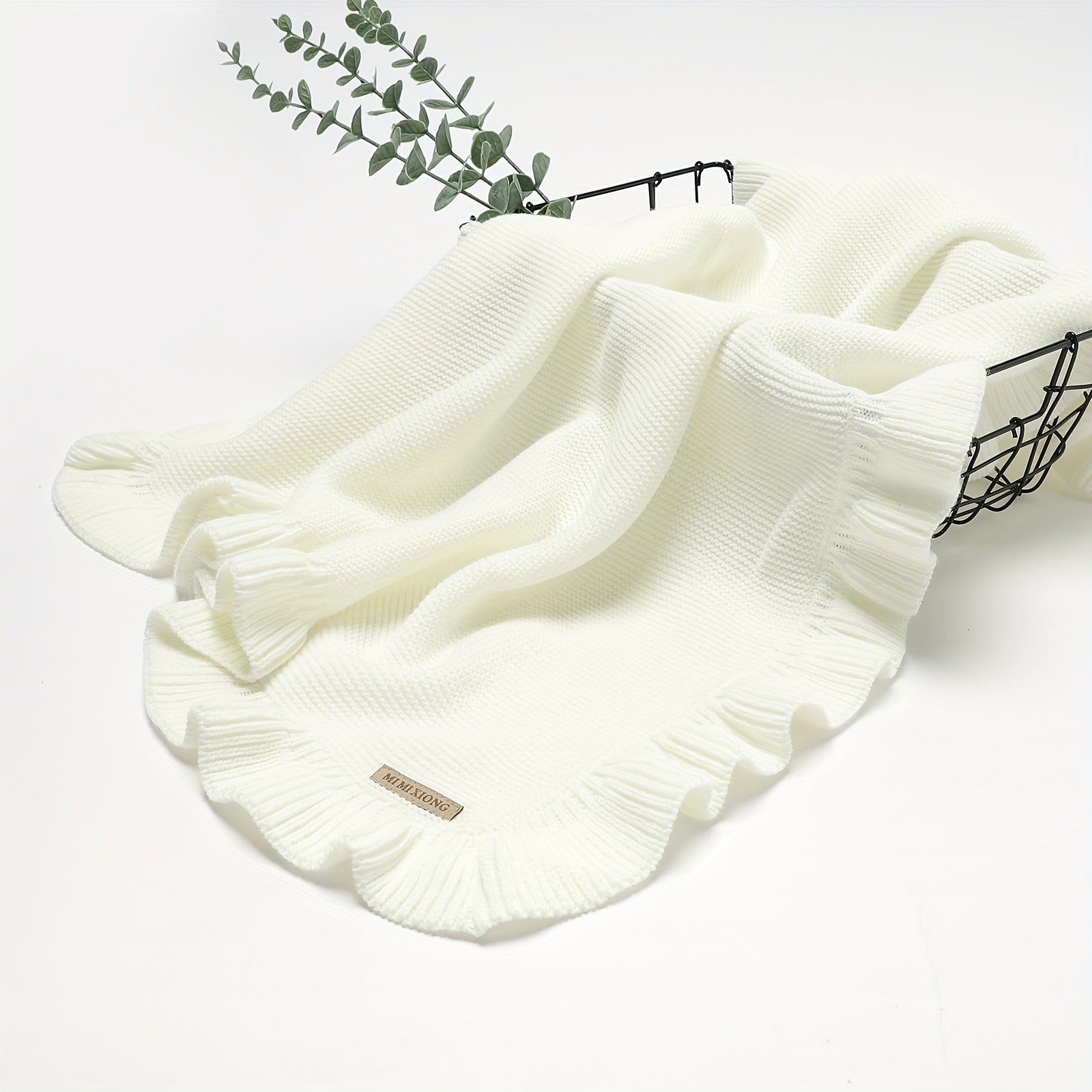 Ultra-Soft Acrylic Knitted Baby Swaddle Blanket - White with Ruffled Edges & Delicate Trim, Hypoallergenic Nursery & Travel Essential for Infants, Baby Blanket, Scalloped Edge Design, Soft Texture