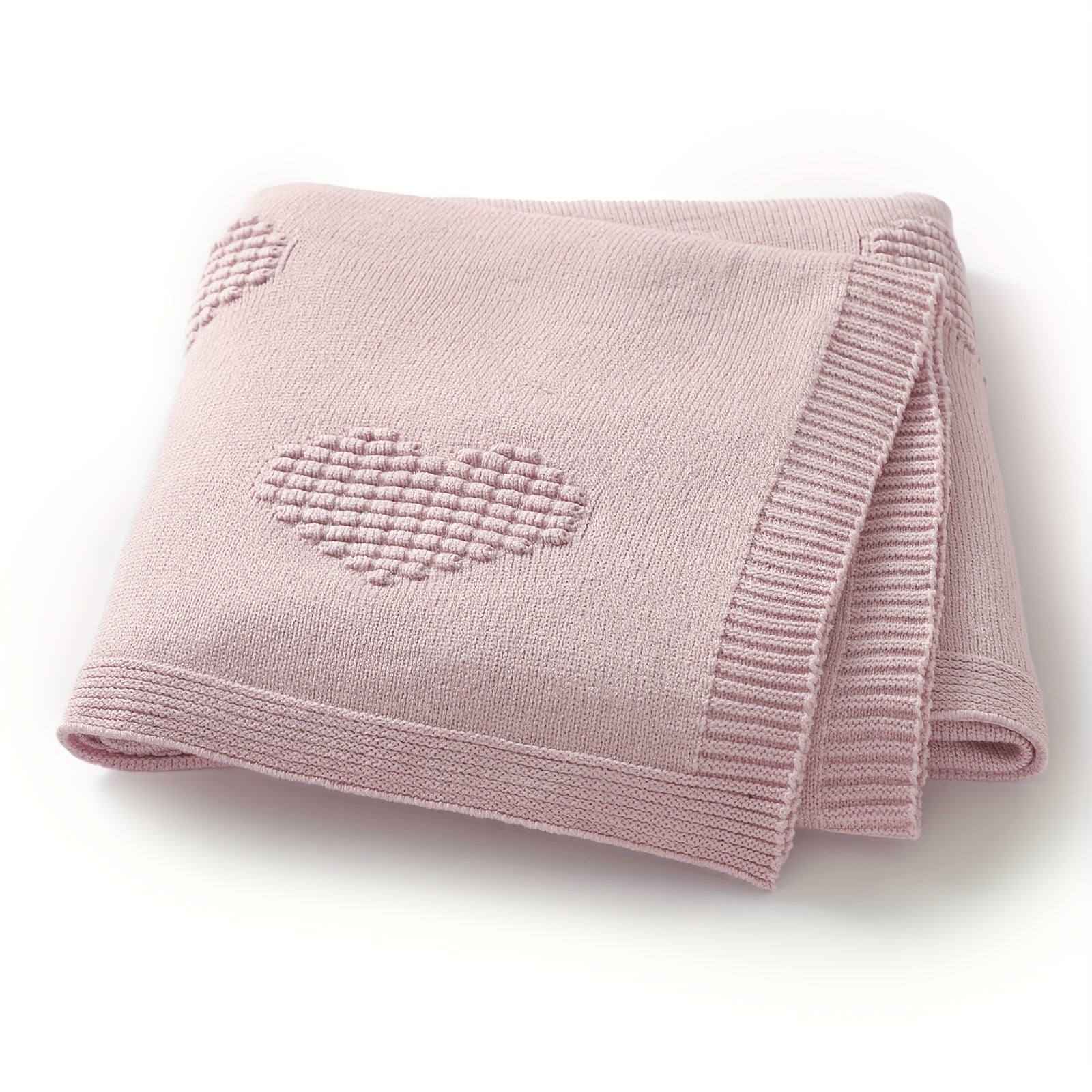 Ultra-Soft Knitted Baby Blanket with Heart Pattern - Adhesive Material, All-Season Lightweight & Warm, Pastel Pink for Newborns 0+ Months, Swaddle Blanket for Sleep, Playtime & Home Decor