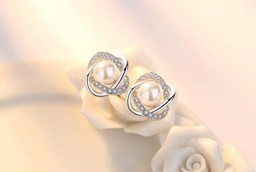 Upscale 925 Sterling Silver Earrings Zircon Pearl Twist Luxury Stud Earrings For Women brincos pendientes bijoux