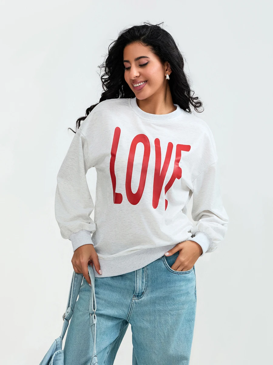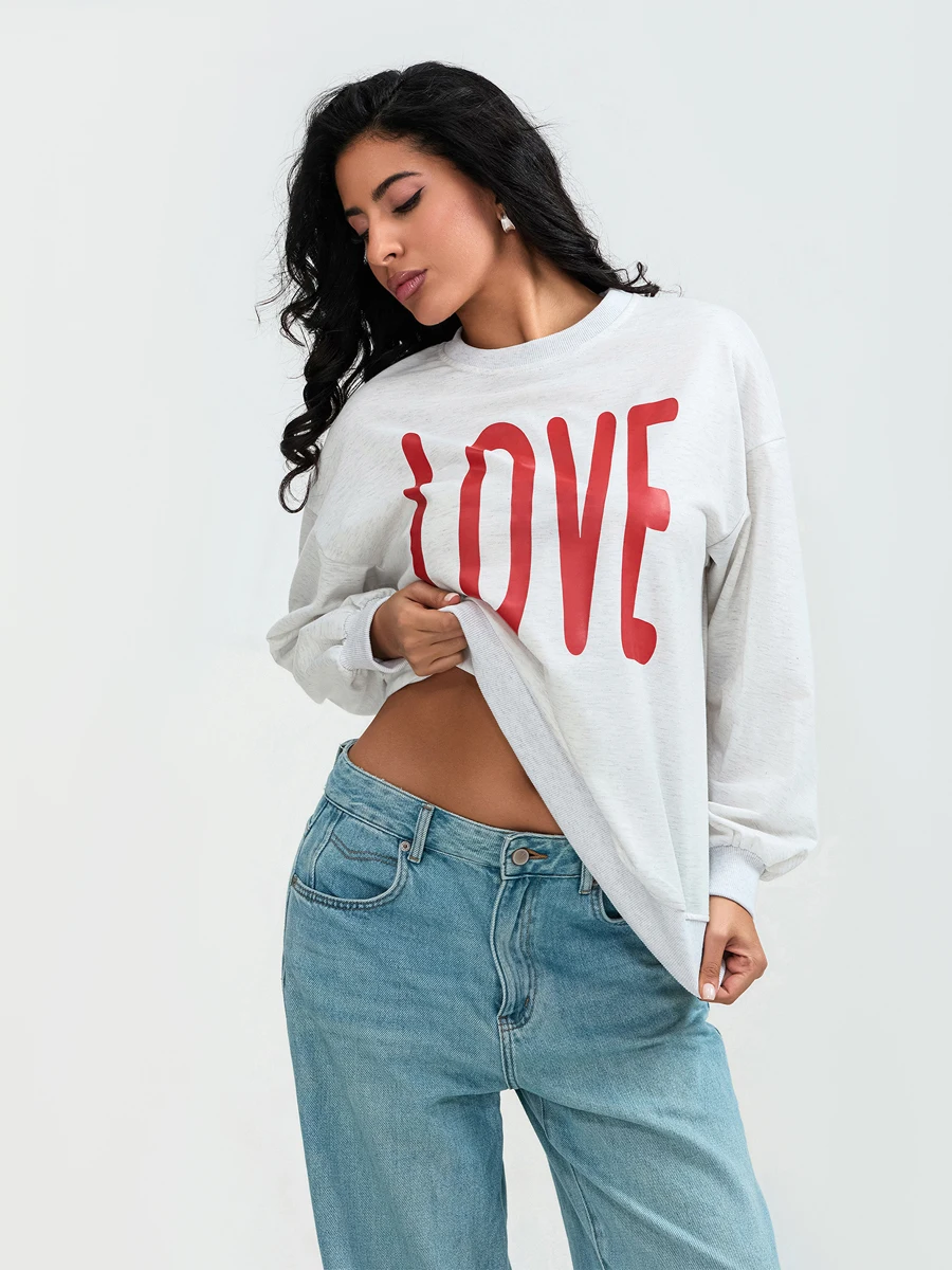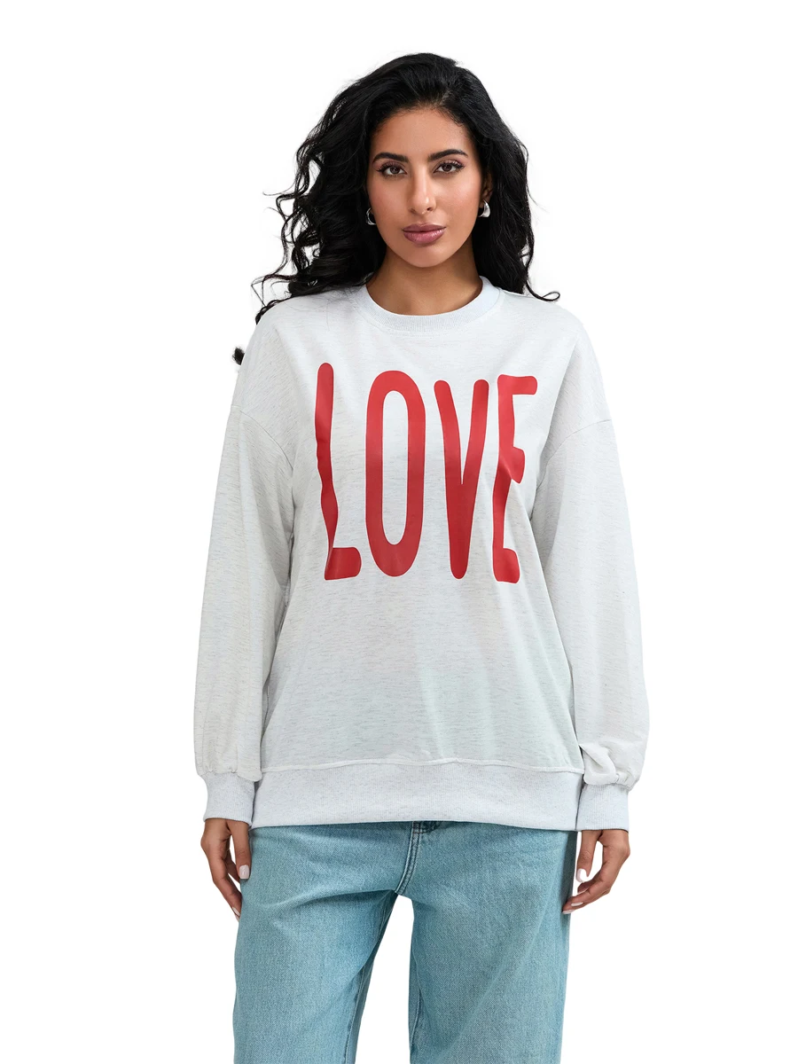 Valentine s Day Women s Casual Loose Fit Sweatshirt with Long Sleeves and Round Neckline Featuring Letter Print Design