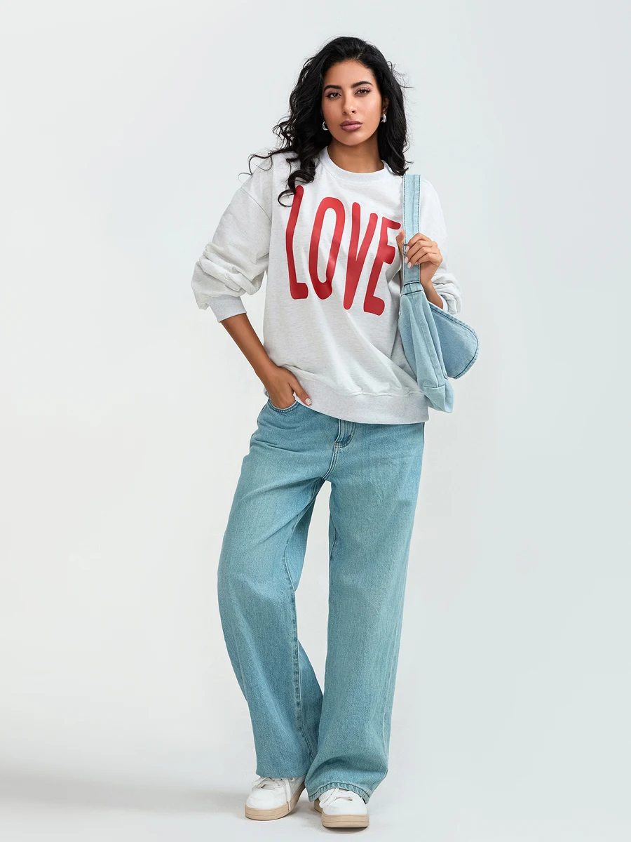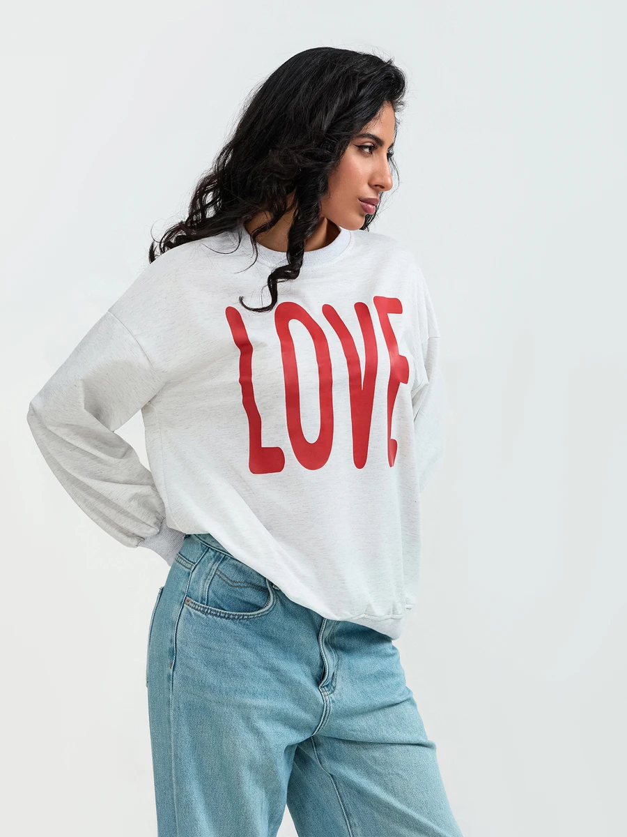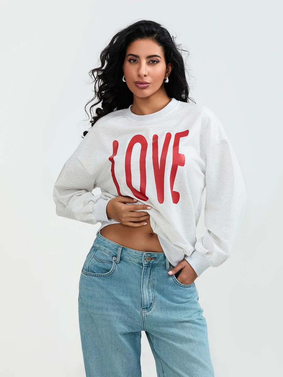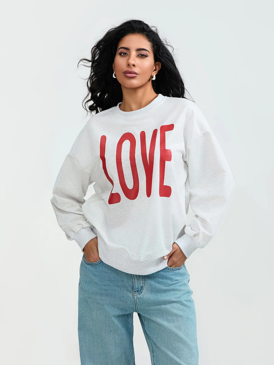 Valentine s Day Women s Casual Loose Fit Sweatshirt with Long Sleeves and Round Neckline Featuring Letter Print Design