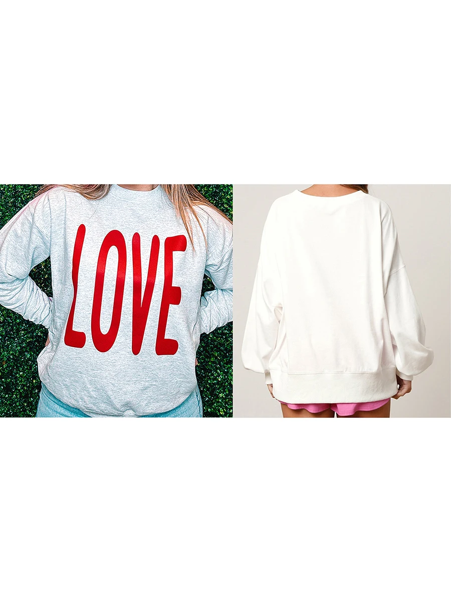 Women's Valentine's Day Loose Sweatshirt Long Sleeve Round Neck Letter Print PulloverSize (cm)