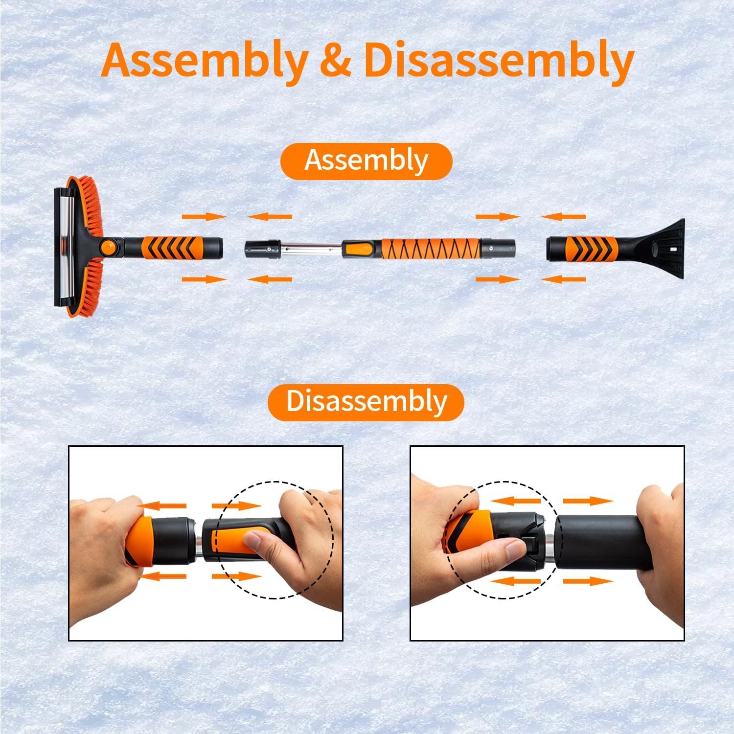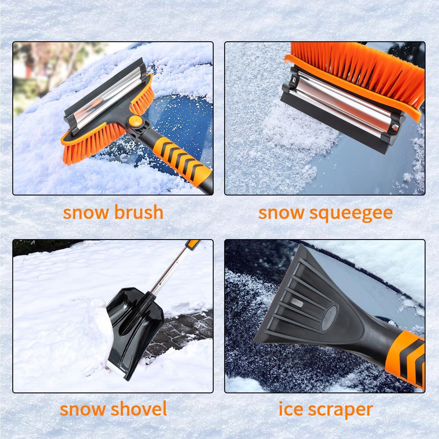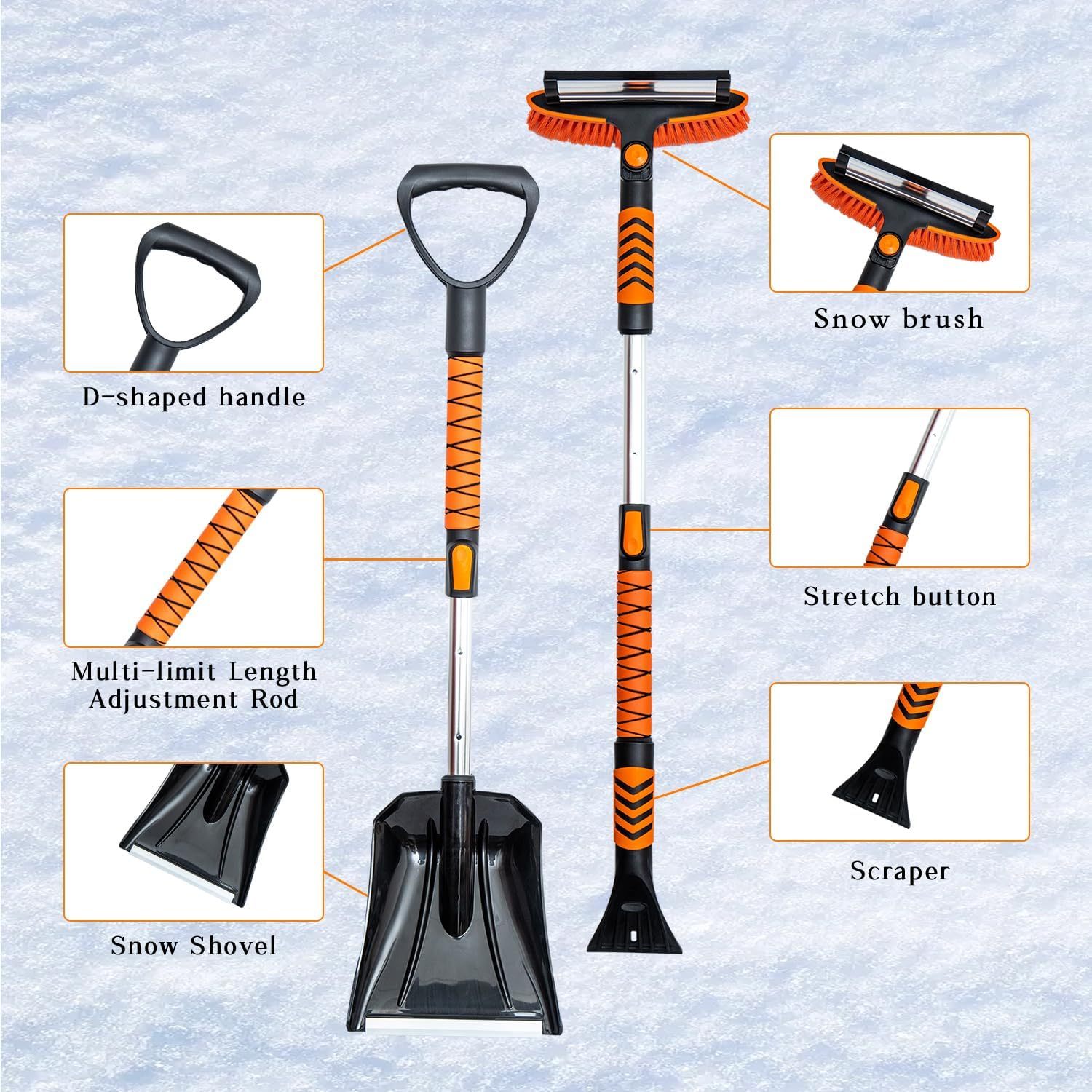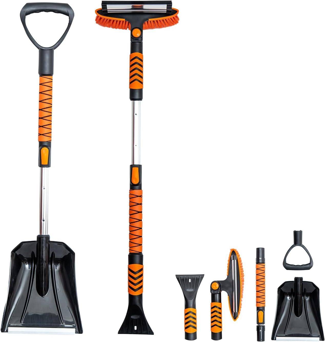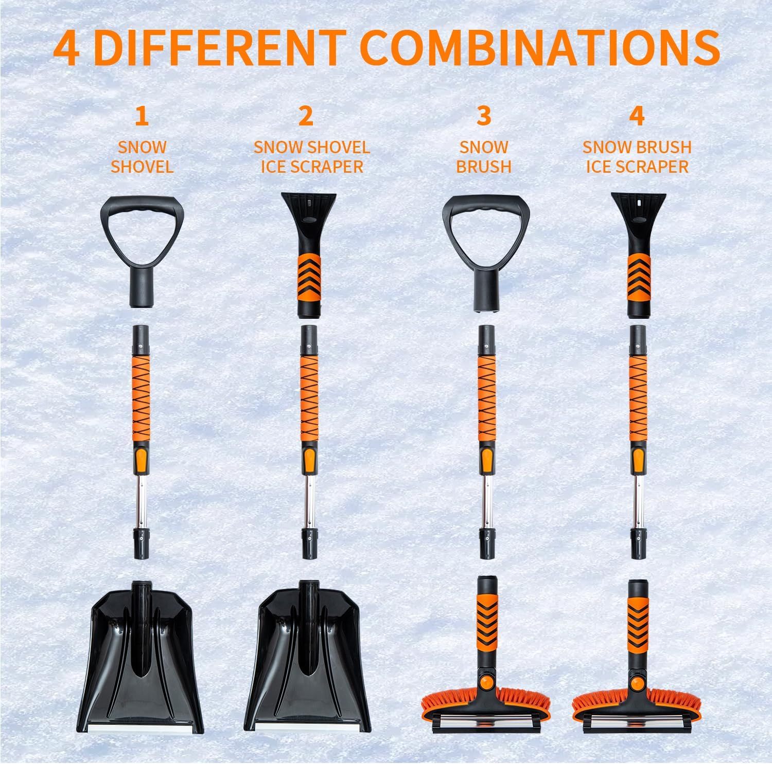 Vivicreate Extendable Snow Brush for Car Emergency, Ice Scrapers for Car Windshield Combo Kit with 270° Pivoting Head, 5-in-1 Snow Removal Tool with Snow Shovel Snow Scraper for Car, Truck, SUV, Winter Car Kit,Car Emergenc