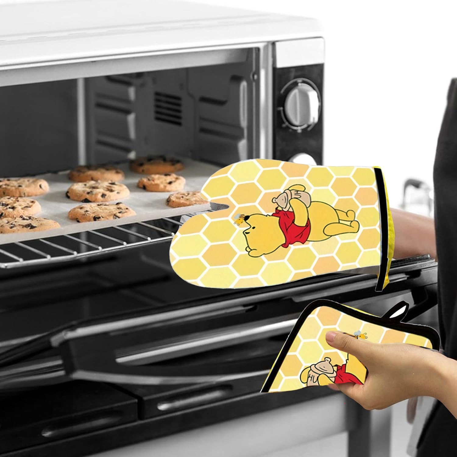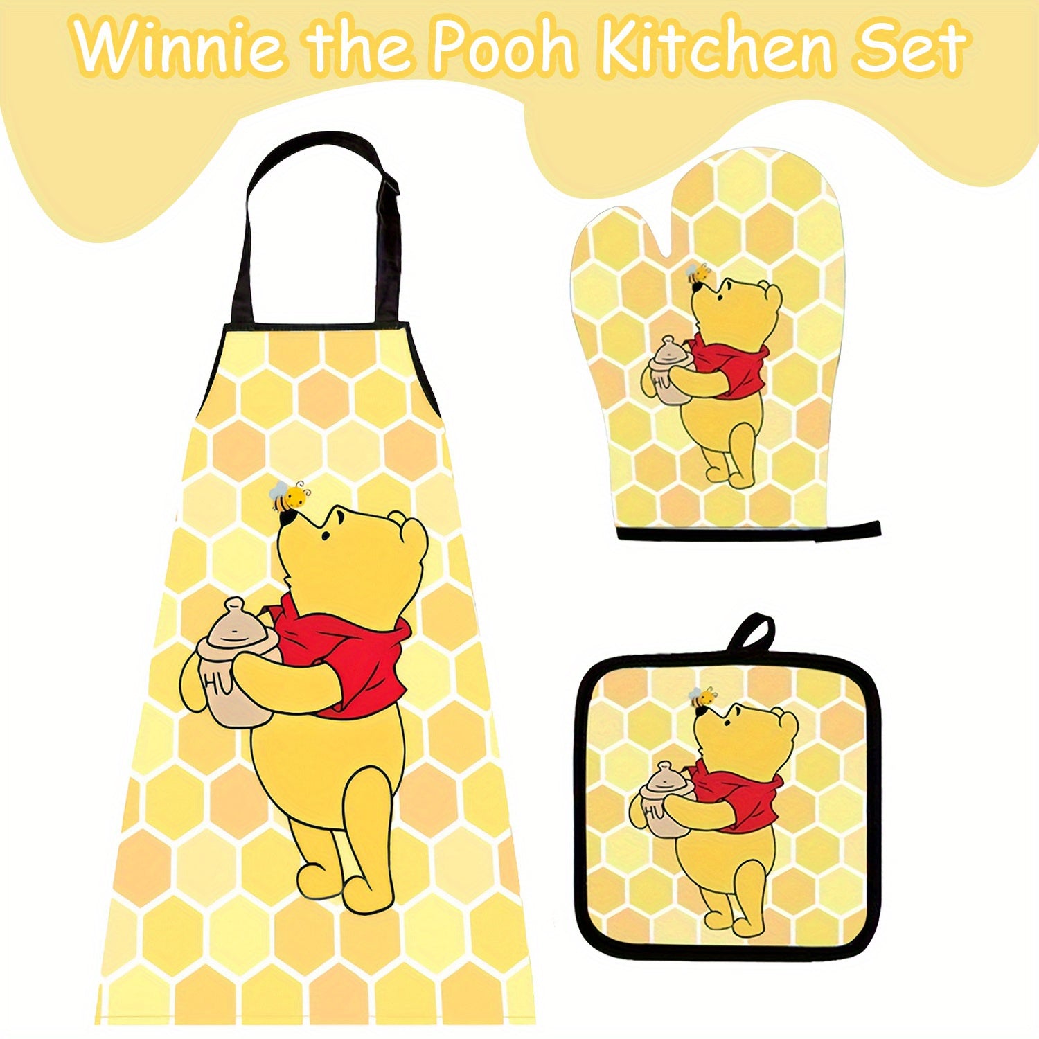Winnie the Pooh Kitchen Set, including a cartoon apron, heat-resistant gloves, and a heat-resistant mat, bringing joy to your culinary creations., Playful Kitchenware, Cheerful Kitchen, Kitchen Gift Set