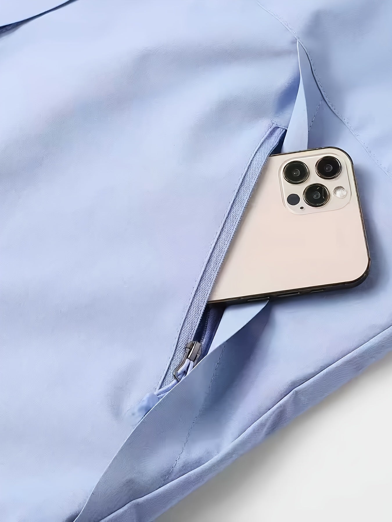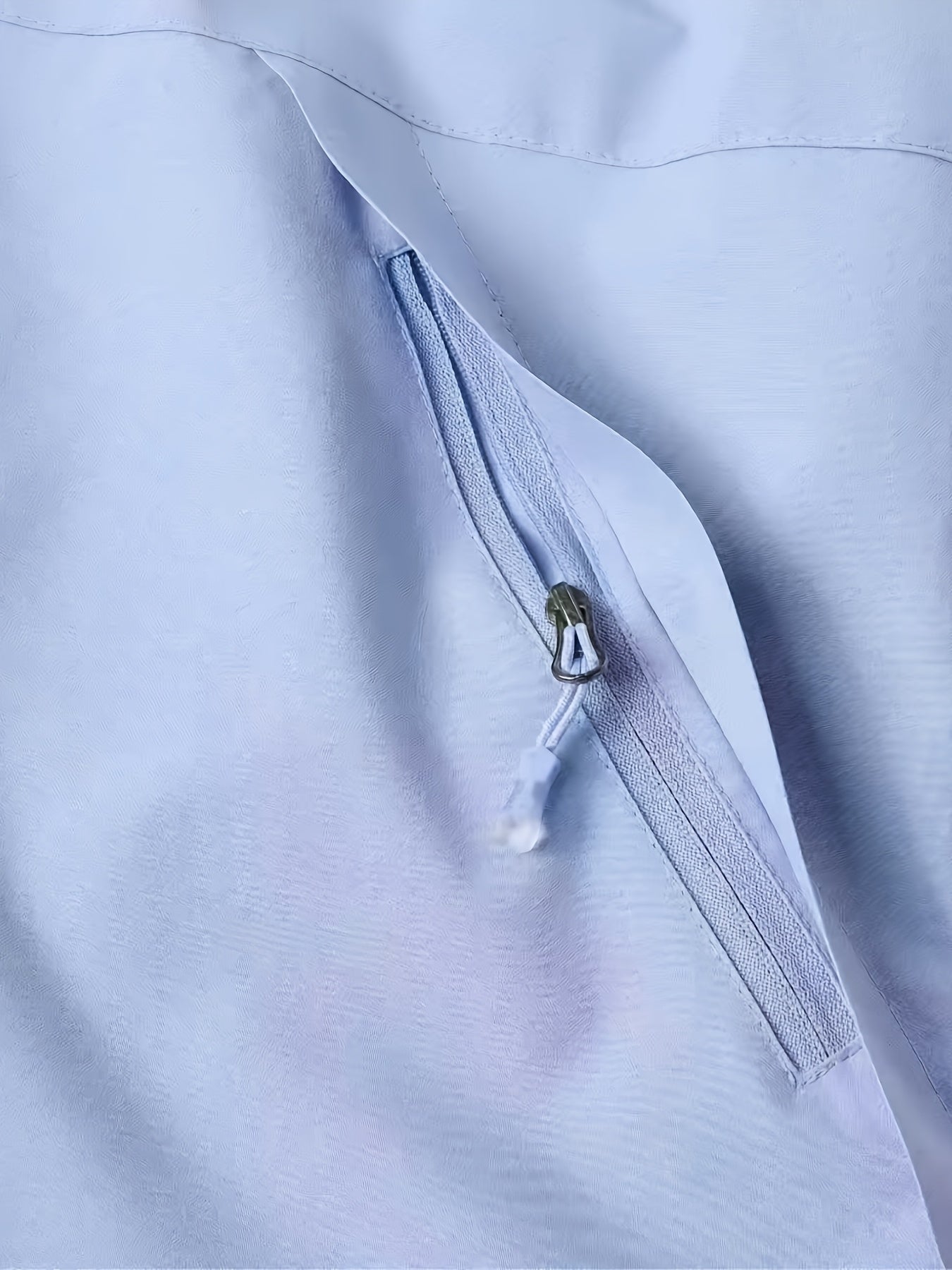 An ideal windbreaker for various outdoor activities. It's not just a raincoat; this jacket can also serve as a stylish light outerwear. It boasts a trendy design.