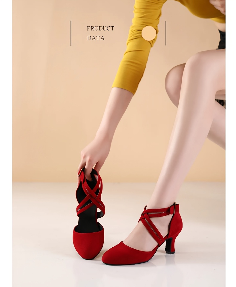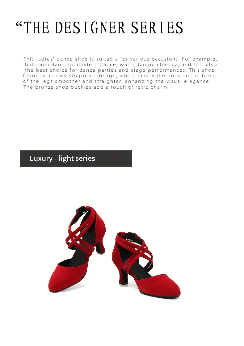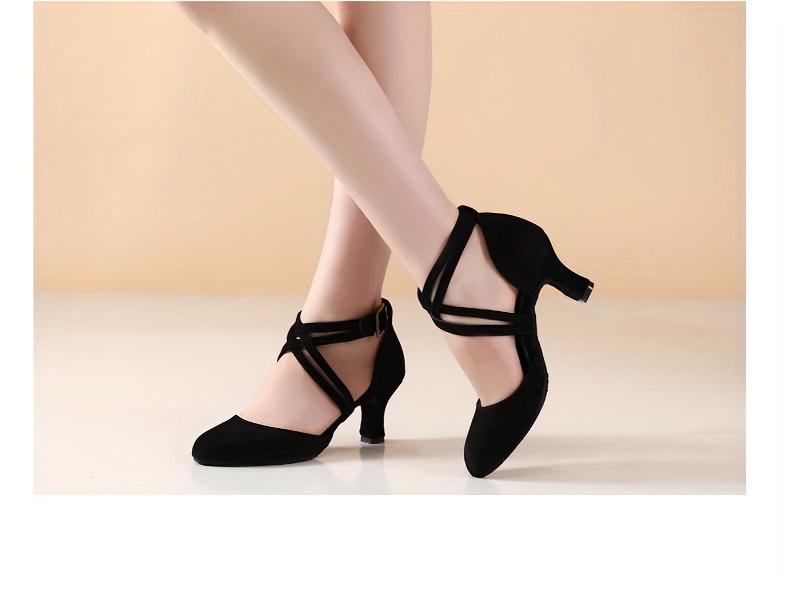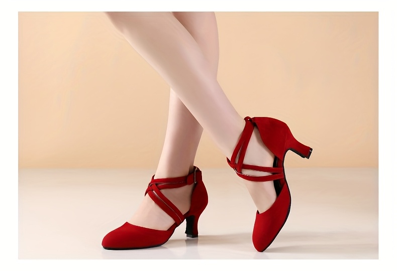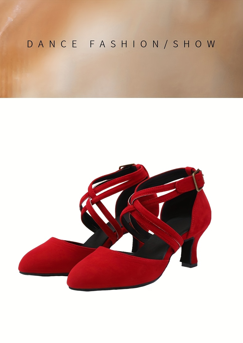 Womens Latin Salsa Dance Shoes - Soft Indoor Fabric, Secure Cross-Straps, Stylish Low Heel, Ultra-Comfortable Fit - Perfect For Cha Cha, Ballroom - Multiple Colors