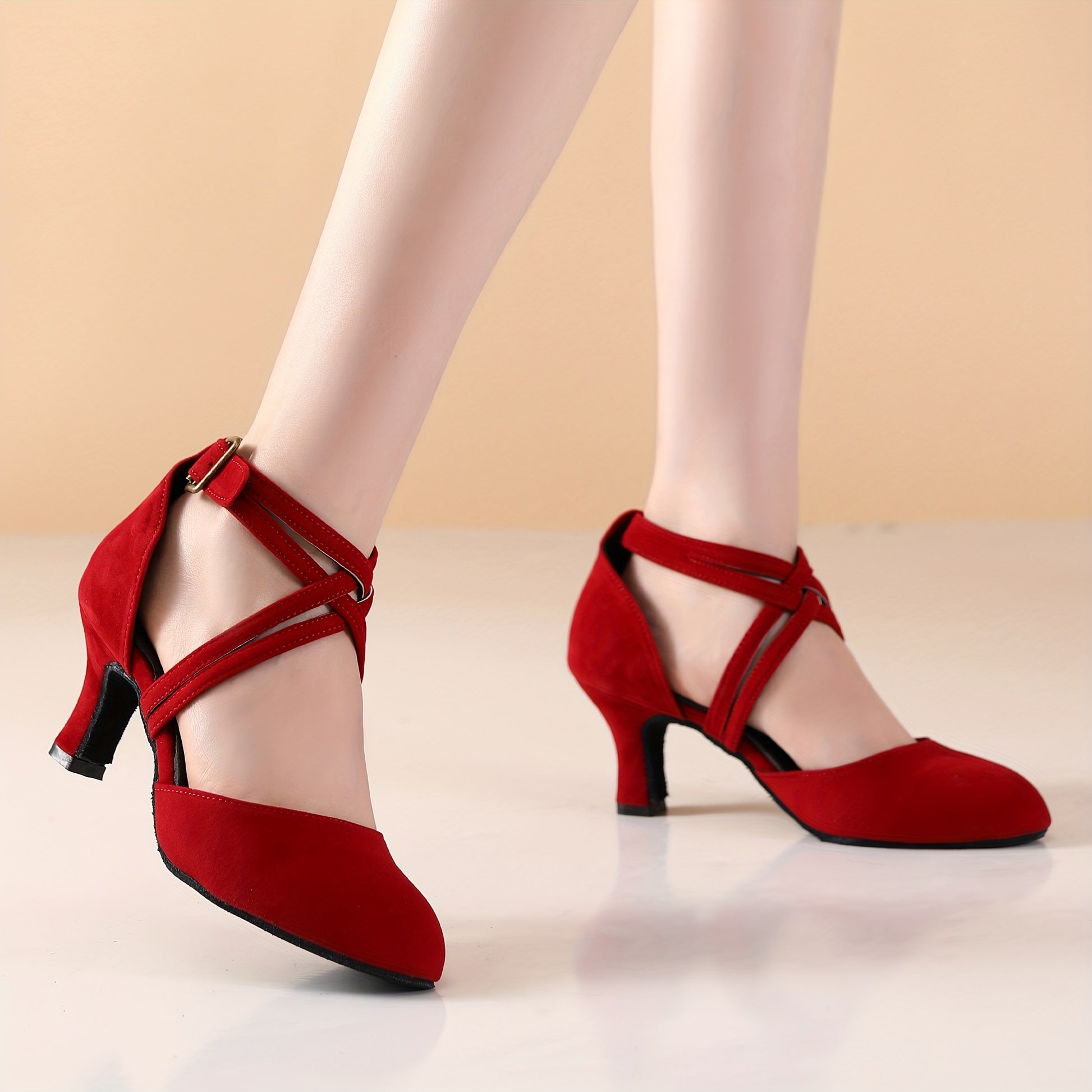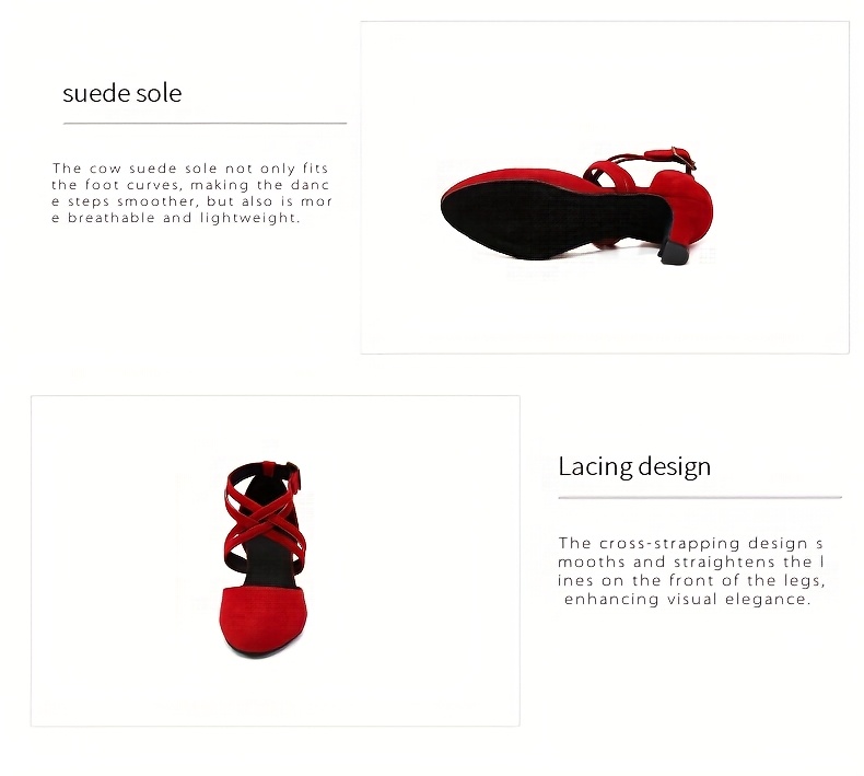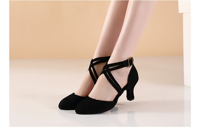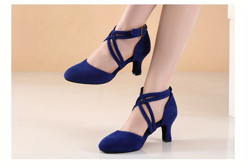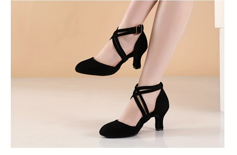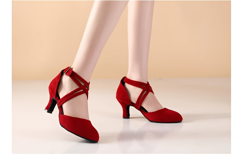 Womens Latin Salsa Dance Shoes - Soft Indoor Fabric, Secure Cross-Straps, Stylish Low Heel, Ultra-Comfortable Fit - Perfect For Cha Cha, Ballroom - Multiple Colors