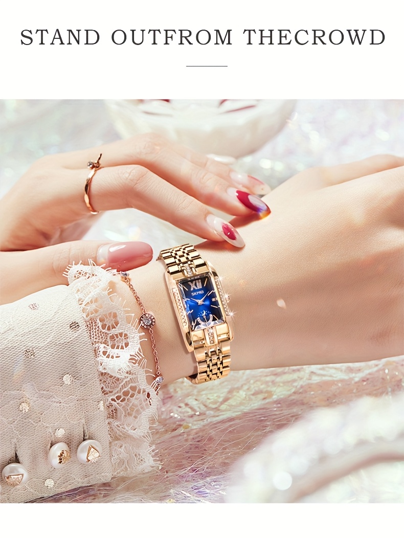 Women's Light Luxury Watches with Blue Star Dial and Heart Clasp Bracelet, Modular Fashion Accessories, Watches for Gifts