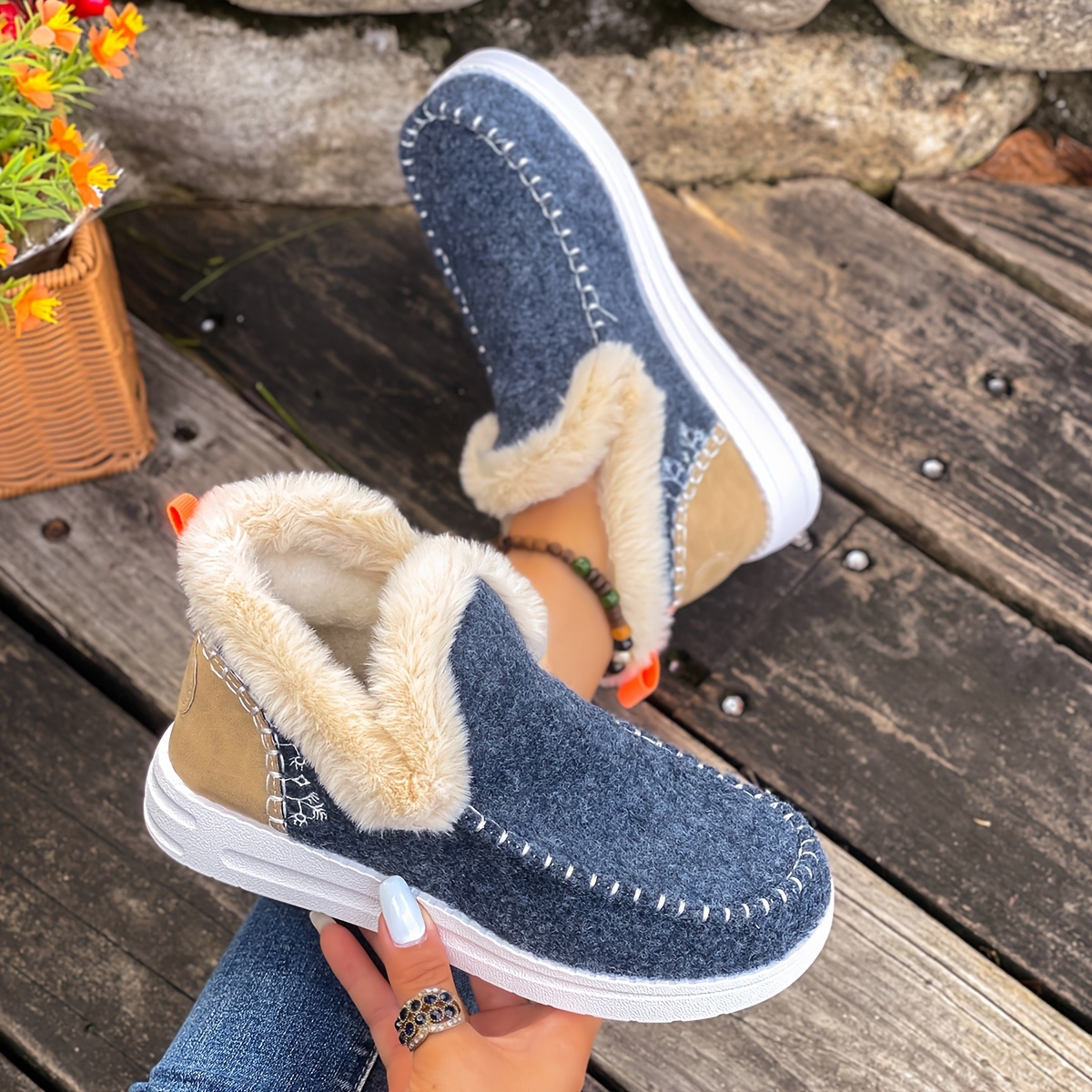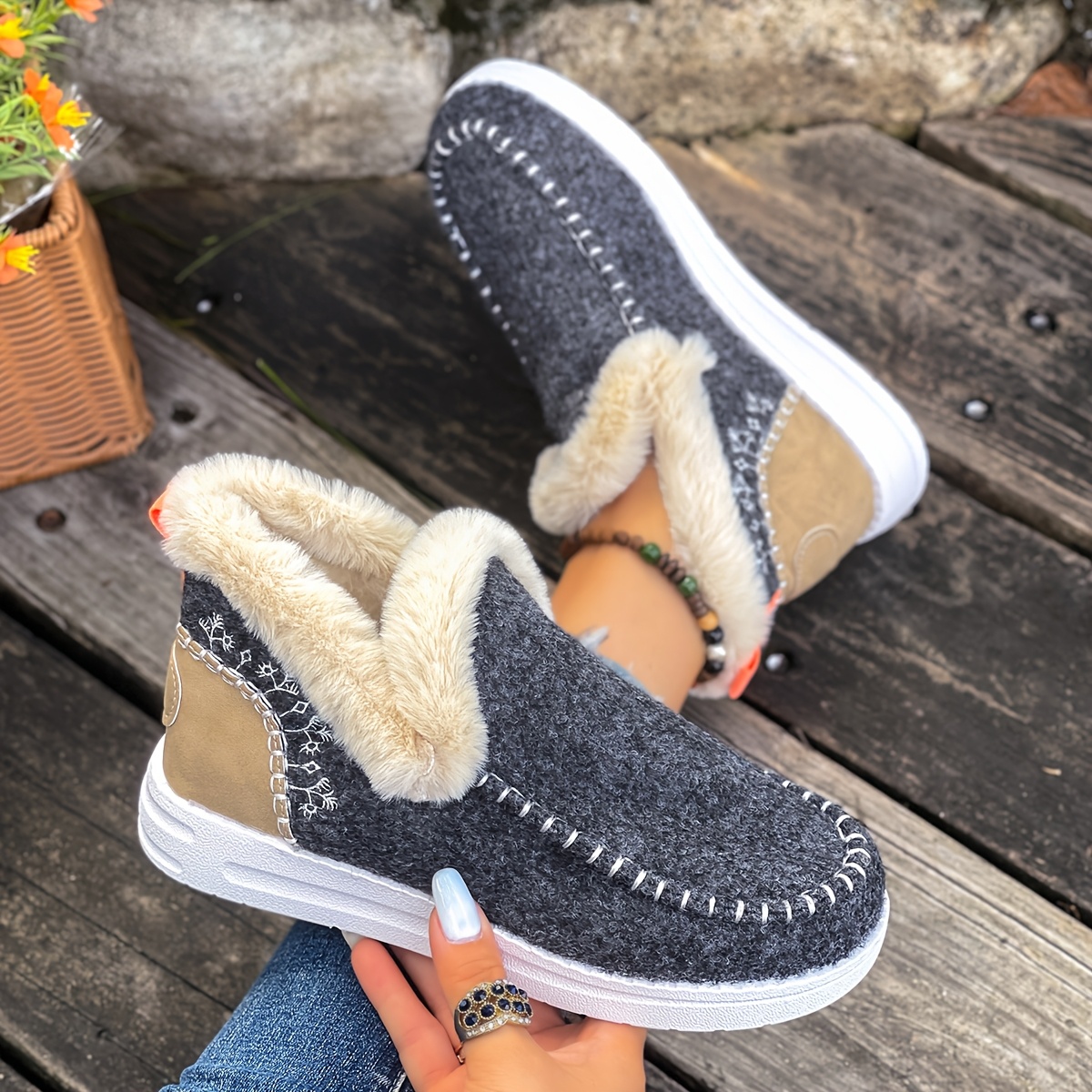Women'S Plus Size Cozy Plush Slip-On Snow Boots with Soft Rubber Sole - Lightweight Warm Winter Boots with Cushioned Insole, Round Toe & Arch Support, Casual Outdoor Shoes for Cold Weather, Black & Brown (Canvas Lining) - Ide