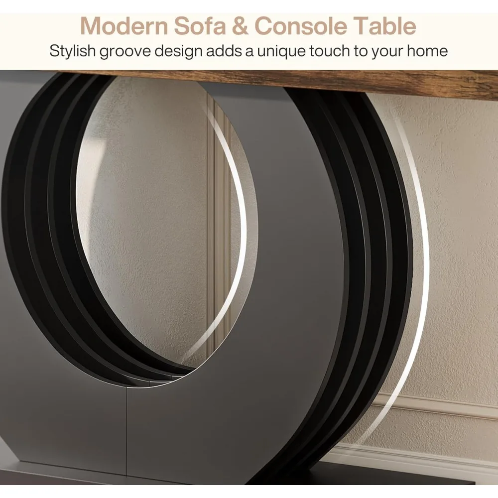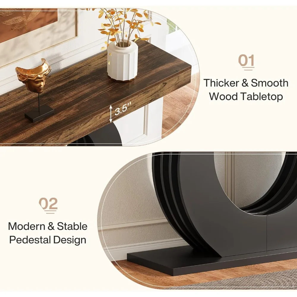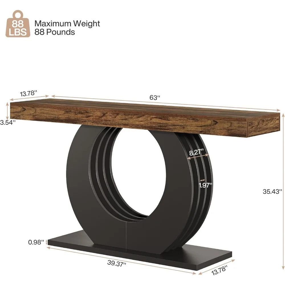 - Function & Style Combined: This 63" entryway table seamlessly blends rustic wood grain tabletop and black round base. This versatile table is suitable for decor, storage, or statement displays. Dimensional depth elevates farmhouse or modern spaces