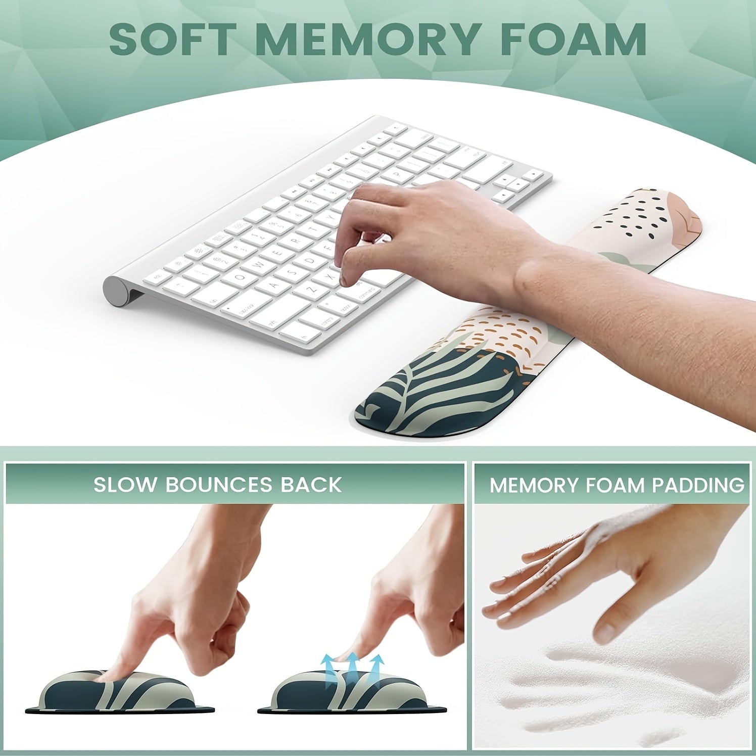 Wrist Support Desk Set - Non-Slip Mouse Pad & Keyboard Rest with Green Palm Leaf Design in Beige/Green/White/Golden - Soft Typing Mat & Coasters for Home Office, Computer, Laptop - Posture-Correct Writing Accessory