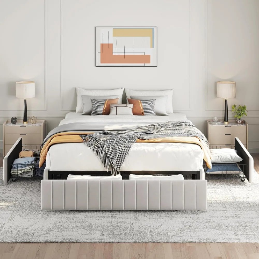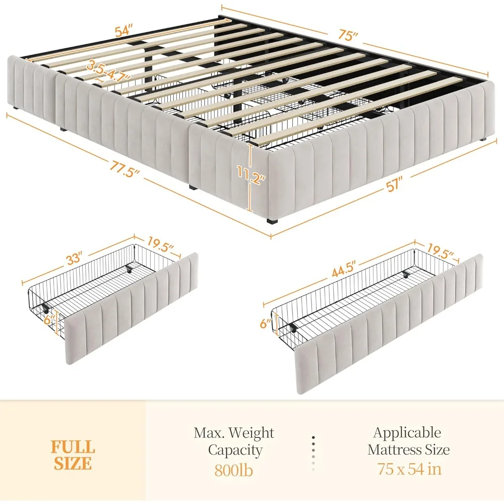 - Stable Construction: The low center of gravity design makes the tufted full bed frame with storage more stable. Twelve pieces of solid wood slats combine metal feet support system to reinforce the sturdiness and durability of the entire bed structure