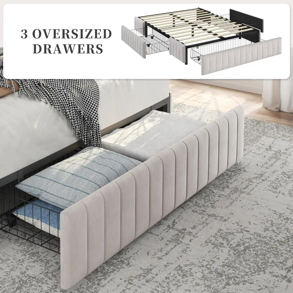 - Underbed Storage: Three wire netting drawers equipped with wheels underneath are easy to slide outward and backward, providing you with sufficient storage space to accommodate your bedding items