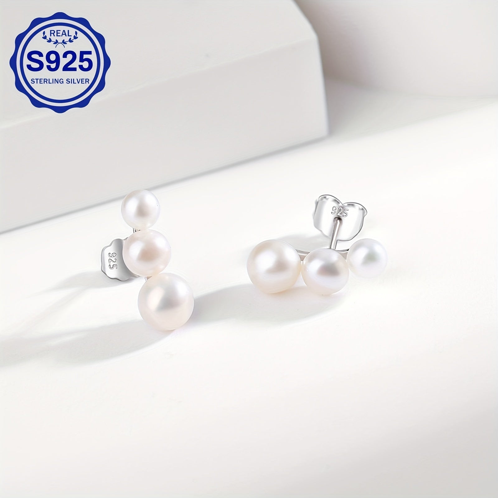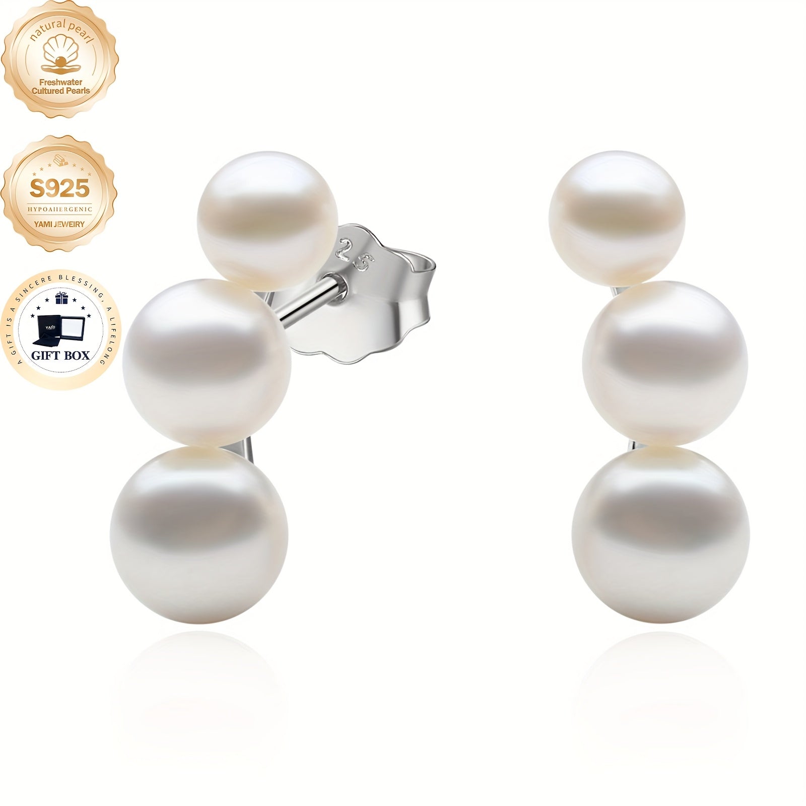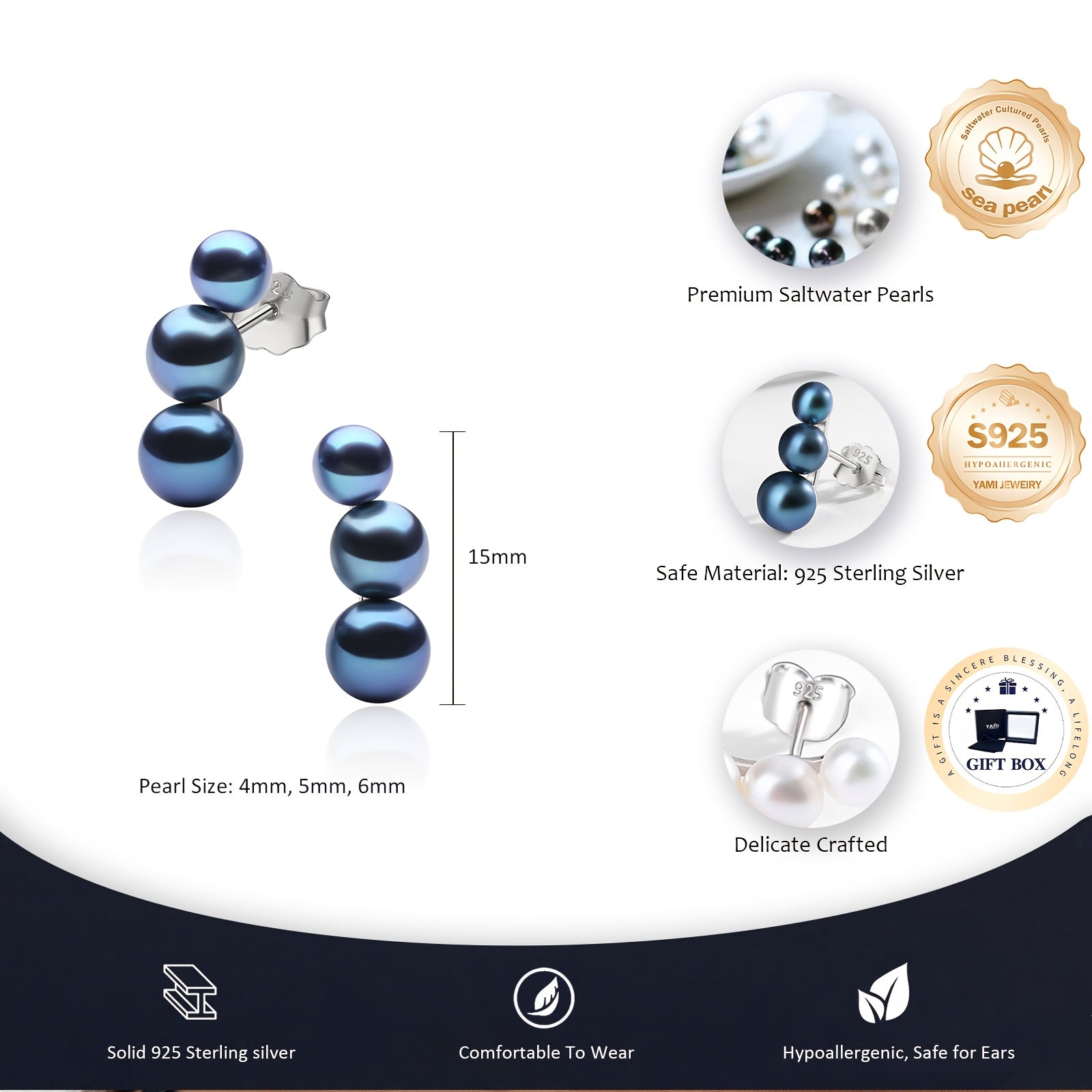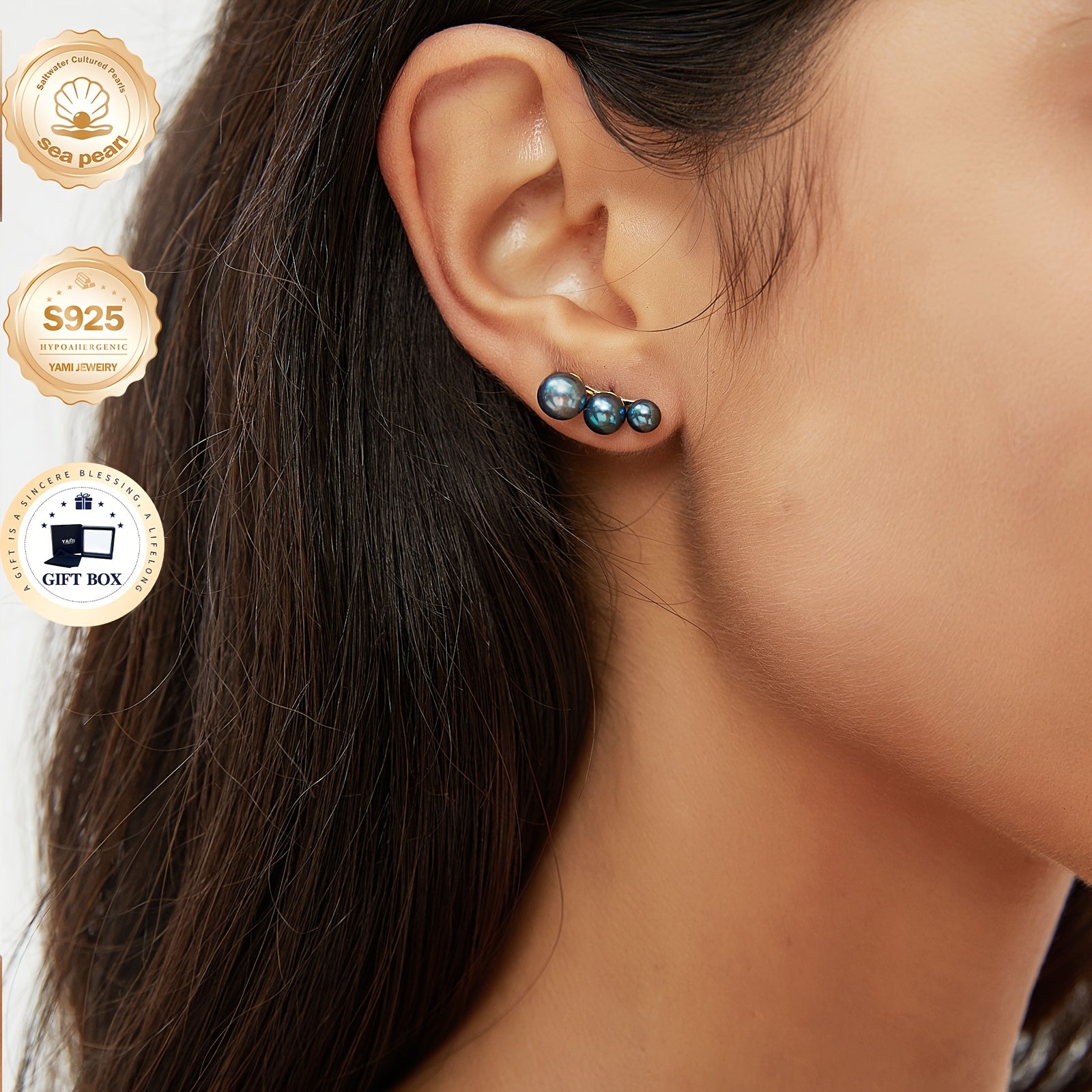 YAMI Black Seawater Pearl Stud Or Hoop Earrings For Women, 925 Sterling Silver Hypoallergenic Earrings, Climber Crawler Jewelry, Dainty Jewelry Gifts For Anniversary Birthday
